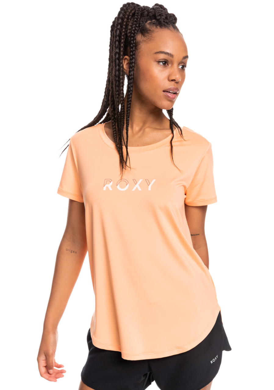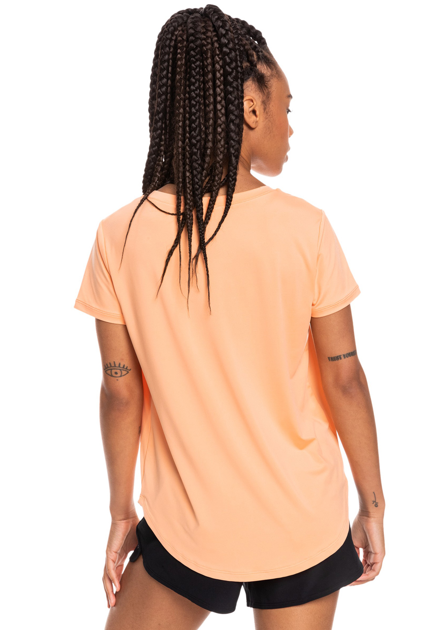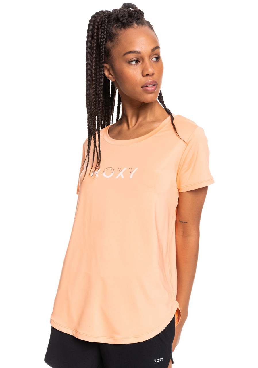 The minimalist women's Roxy Dance T-shirt, with a classic looser cut in pastel colors, will be a great companion for a whole day in the city or on a walk in nature. Thanks to the DryFlight technology, which the T-shirt is made of and wicks sweat away from the body, you will feel comfortable and fresh. The discreet ROXY logo is on the chest. The round neckline and short sleeves are a timeless classic for summer days.