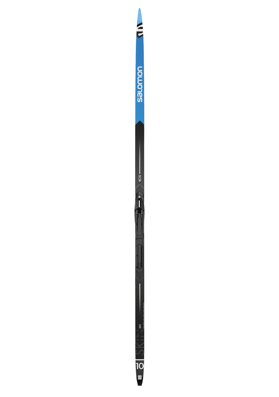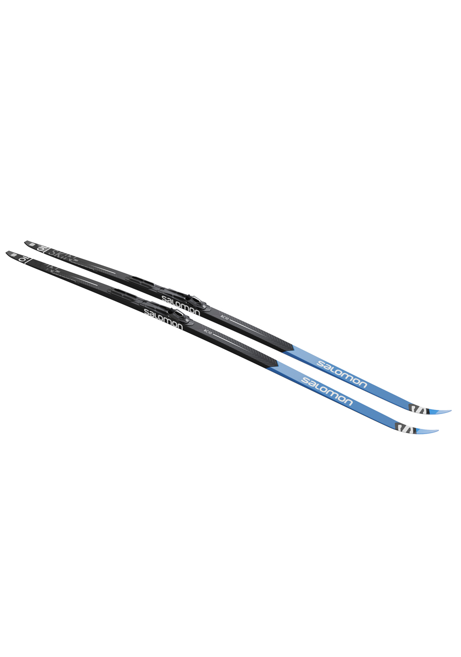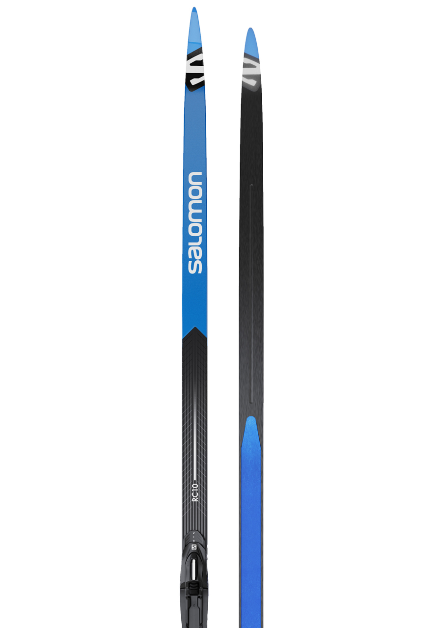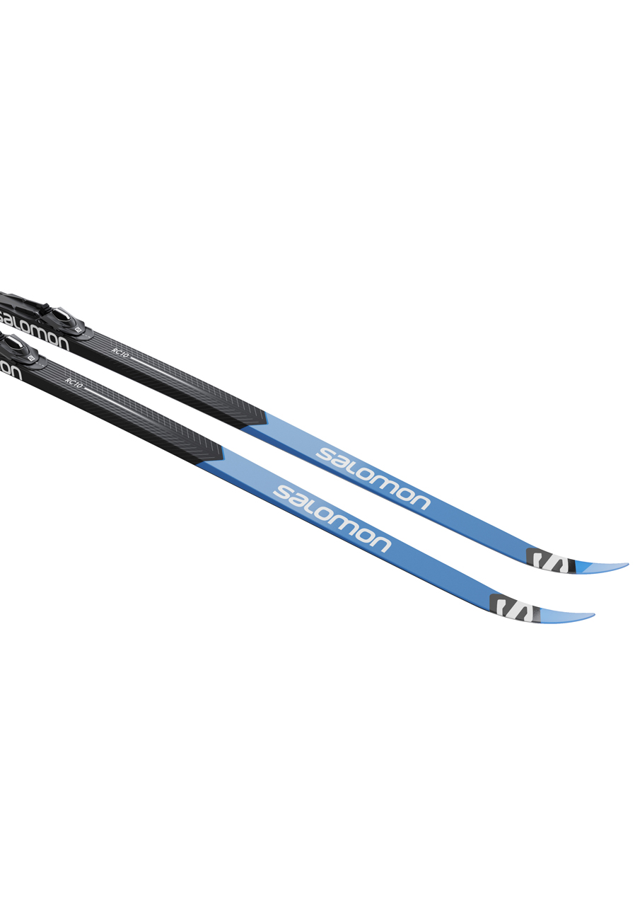 The Salomon RC10 eSKIN Hard are ultra‑high‑performance classic skis featuring integrated 100% mohair eSKIN skins, delivering flawless kick and glide in changing snow conditions—no grip wax required. The Hard camber profile is designed for heavier or highly technical skiers, offering exceptional support and durability without the risk of skin closure.
