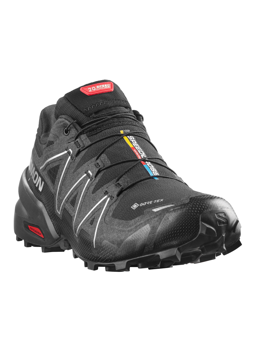 The Salomon Speedcross 6 GTX 20 Years Q1 Black men's trail shoes celebrate the iconic Speedcross series in a limited anniversary edition. Designed for running in challenging terrain, they provide superior traction, stability and protection. The aggressive outsole with a deep tread pattern reliably bites into mud and soft ground. The GORE-TEX® membrane protects against moisture while allowing sweat to drain, so your feet stay dry even in adverse conditions. The lightweight construction and precise cut support dynamic movement, while the Quicklace™ system allows for quick tightening with one pull.