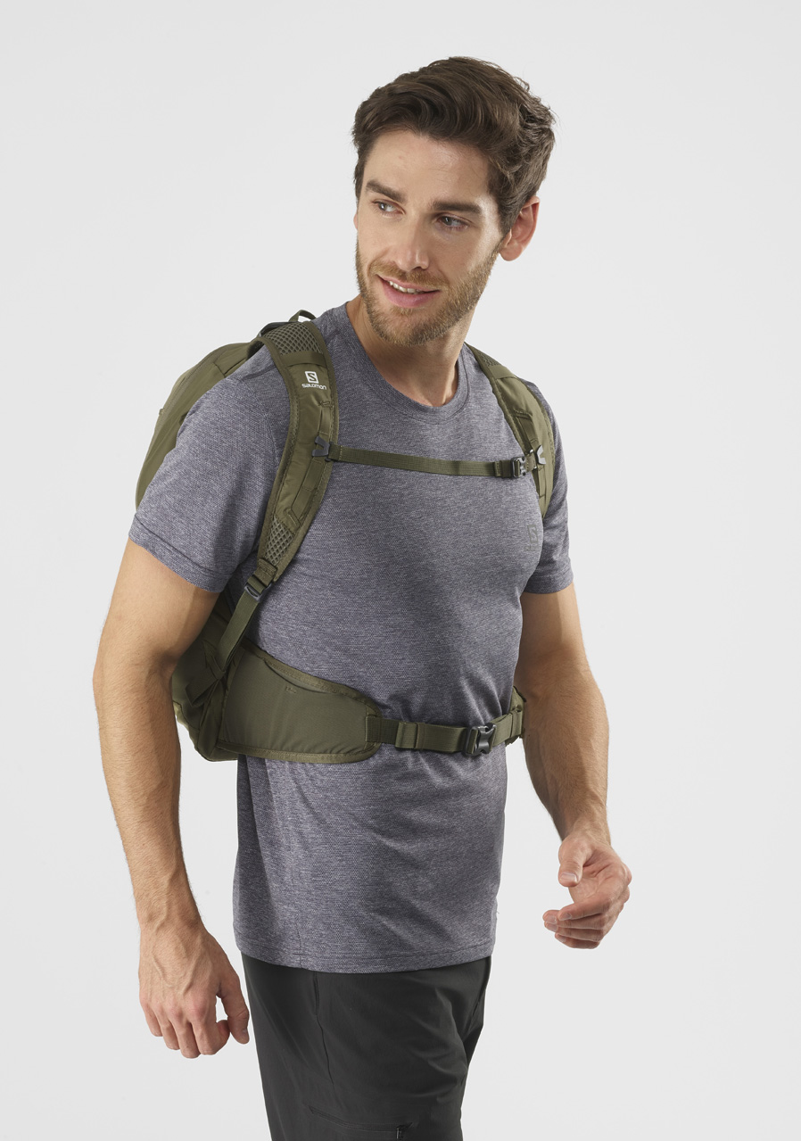 Functions Lightweight design for hiking, commuting, and everyday use Padded back panel and 3D mesh shoulder straps Main zip compartment with sleeve for hydration bladder or laptop Front zip pocket for easy access Stretch side pockets for bottles or gear Attachment loops and reflective details Adjustable sternum strap Compatible with hydration system (up to 2L, not included)