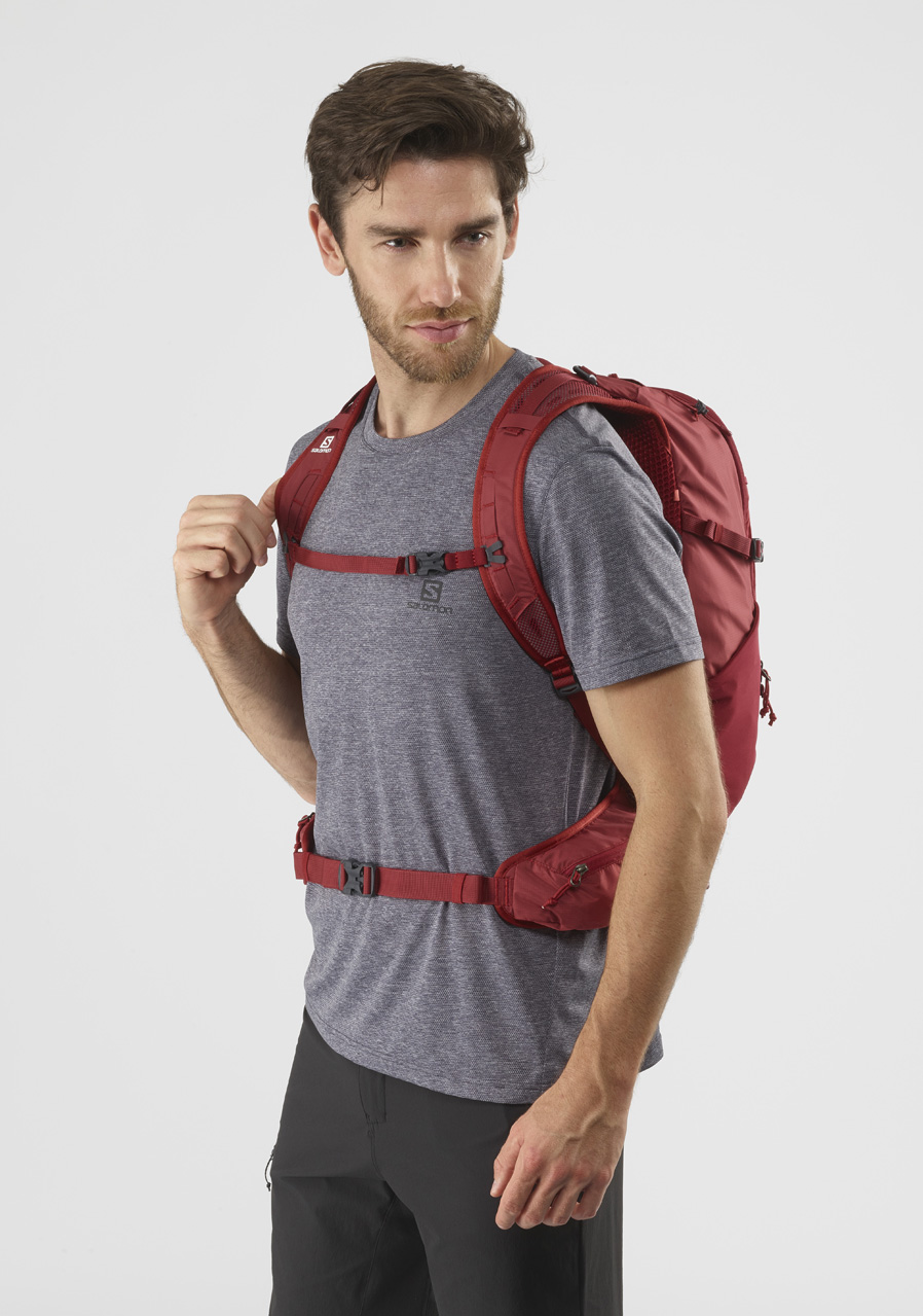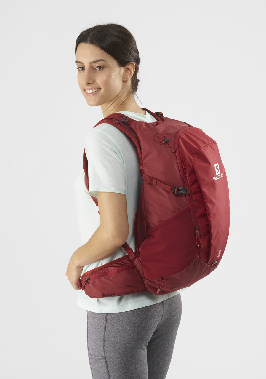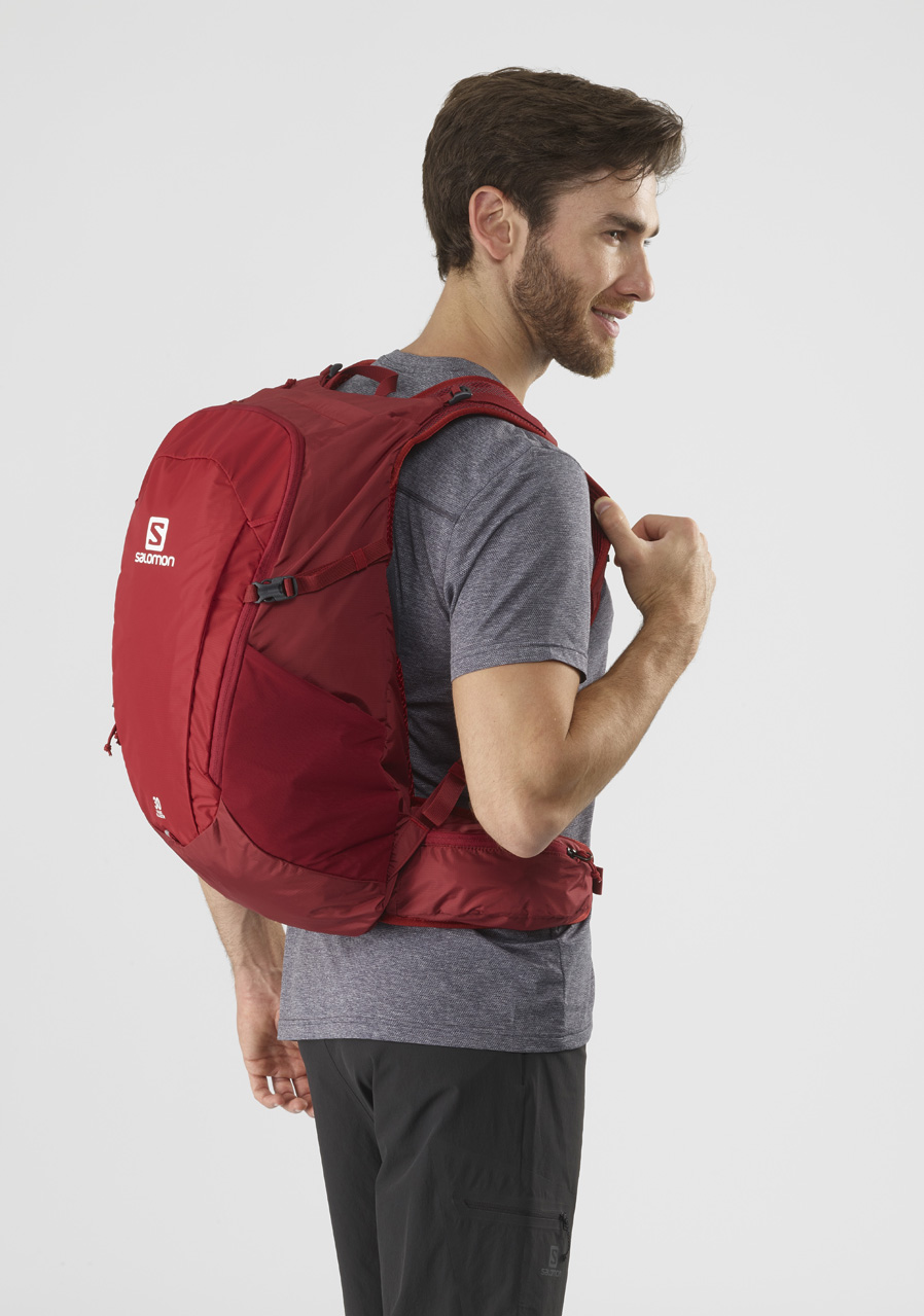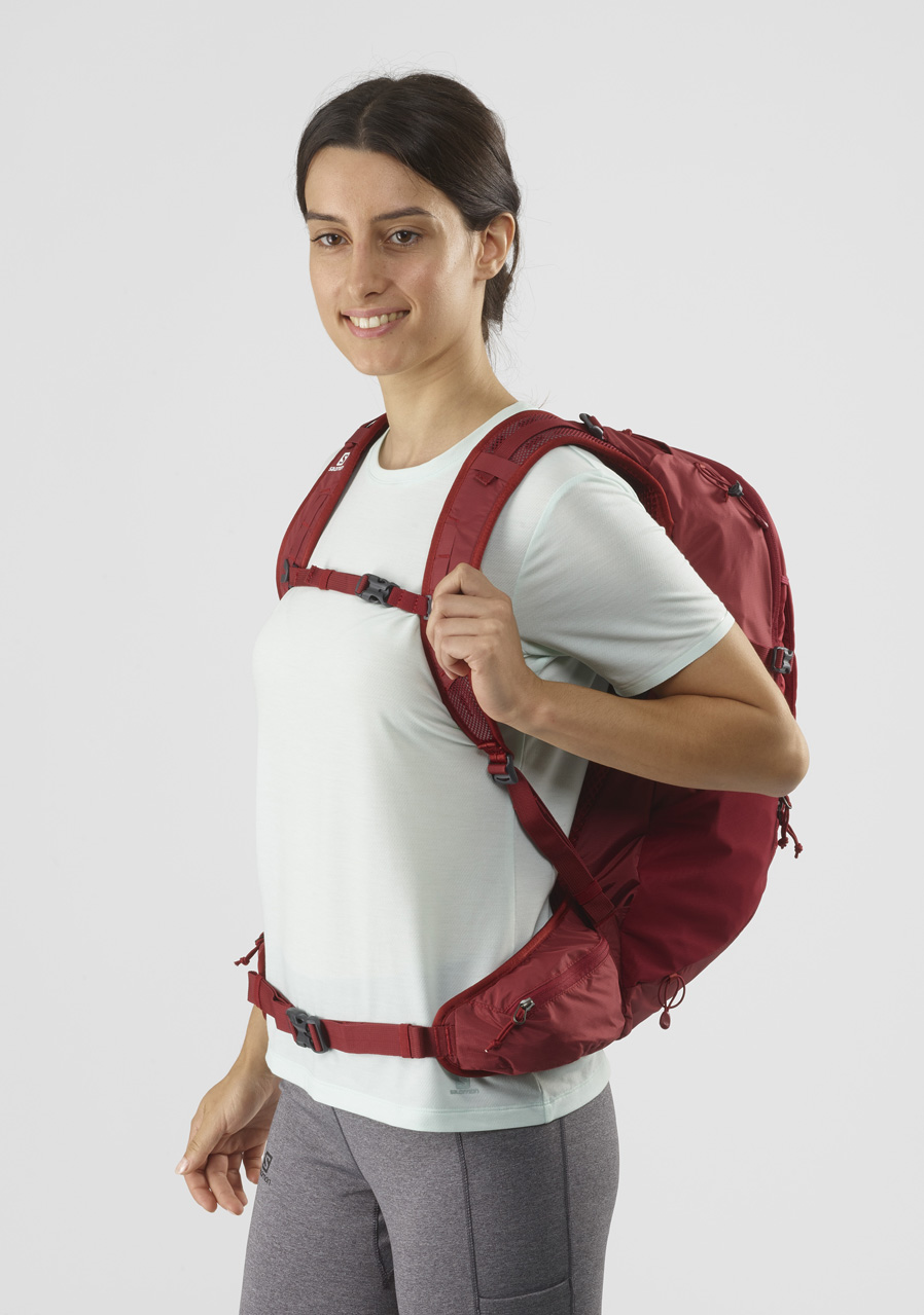 The lightweight and versatile Salomon TRAILBLAZER 30 in Red Chili/Rd Dahlia/Ebony colorway is perfect for day hikes, longer treks, and everyday use. With its simple, clean construction, great fit, and ample capacity, it offers comfortable carrying and practical performance both in nature and in the city.