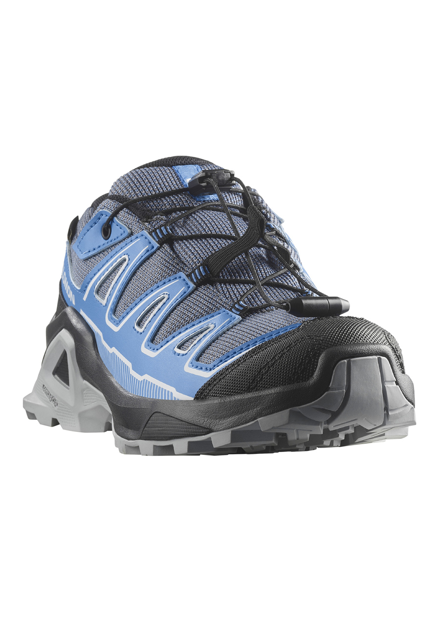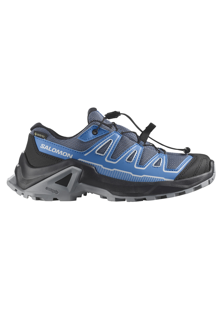 Description:Kids’ Salomon X ULTRA GTX J – Turbulence / Black / French Blue