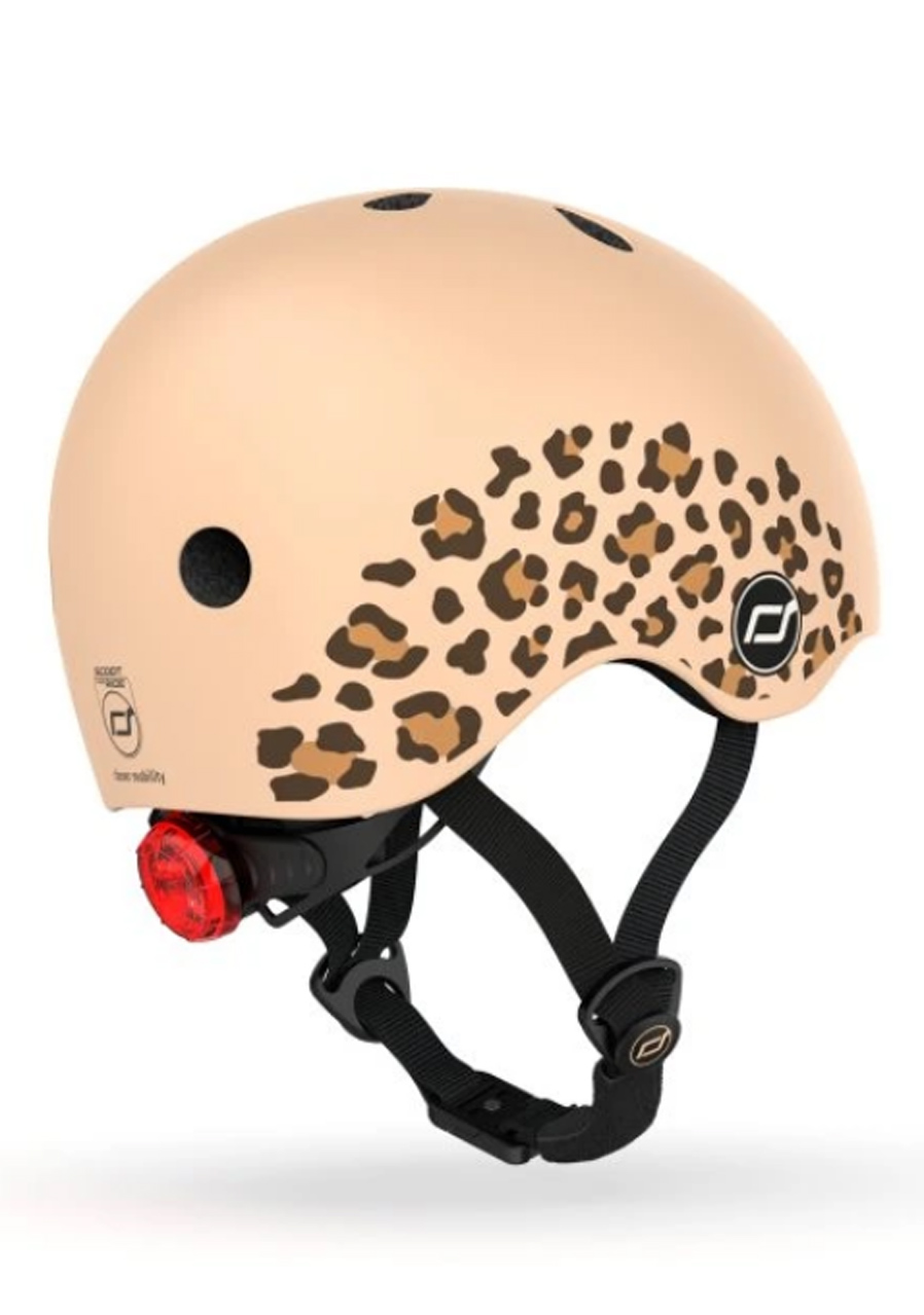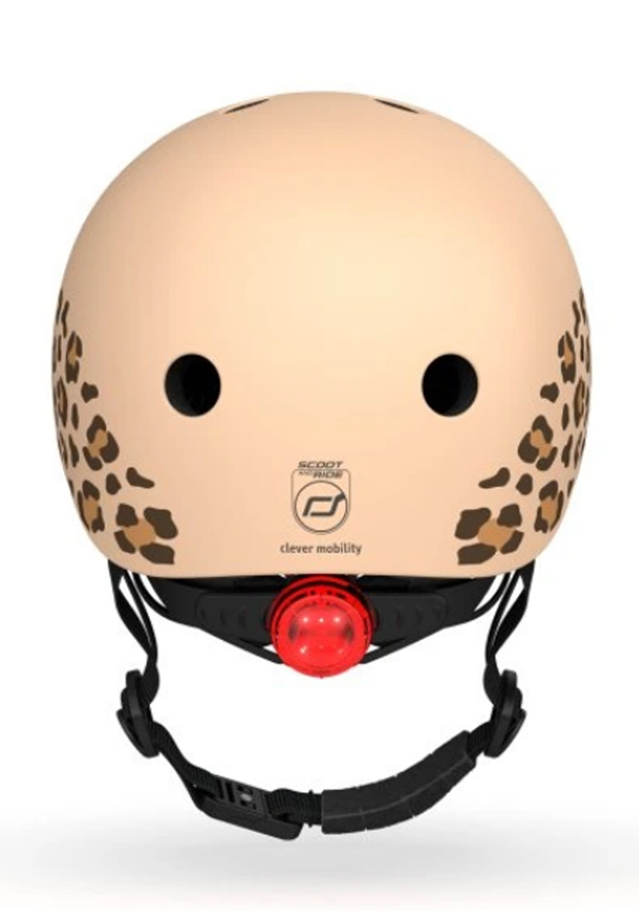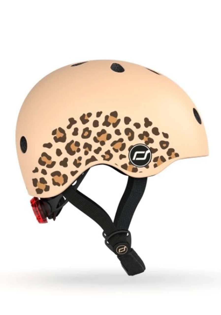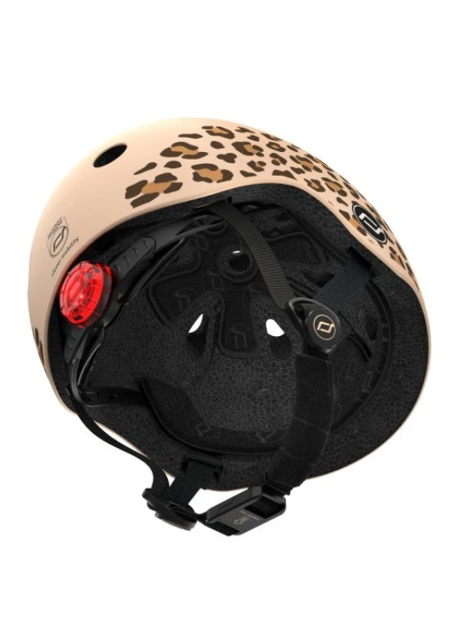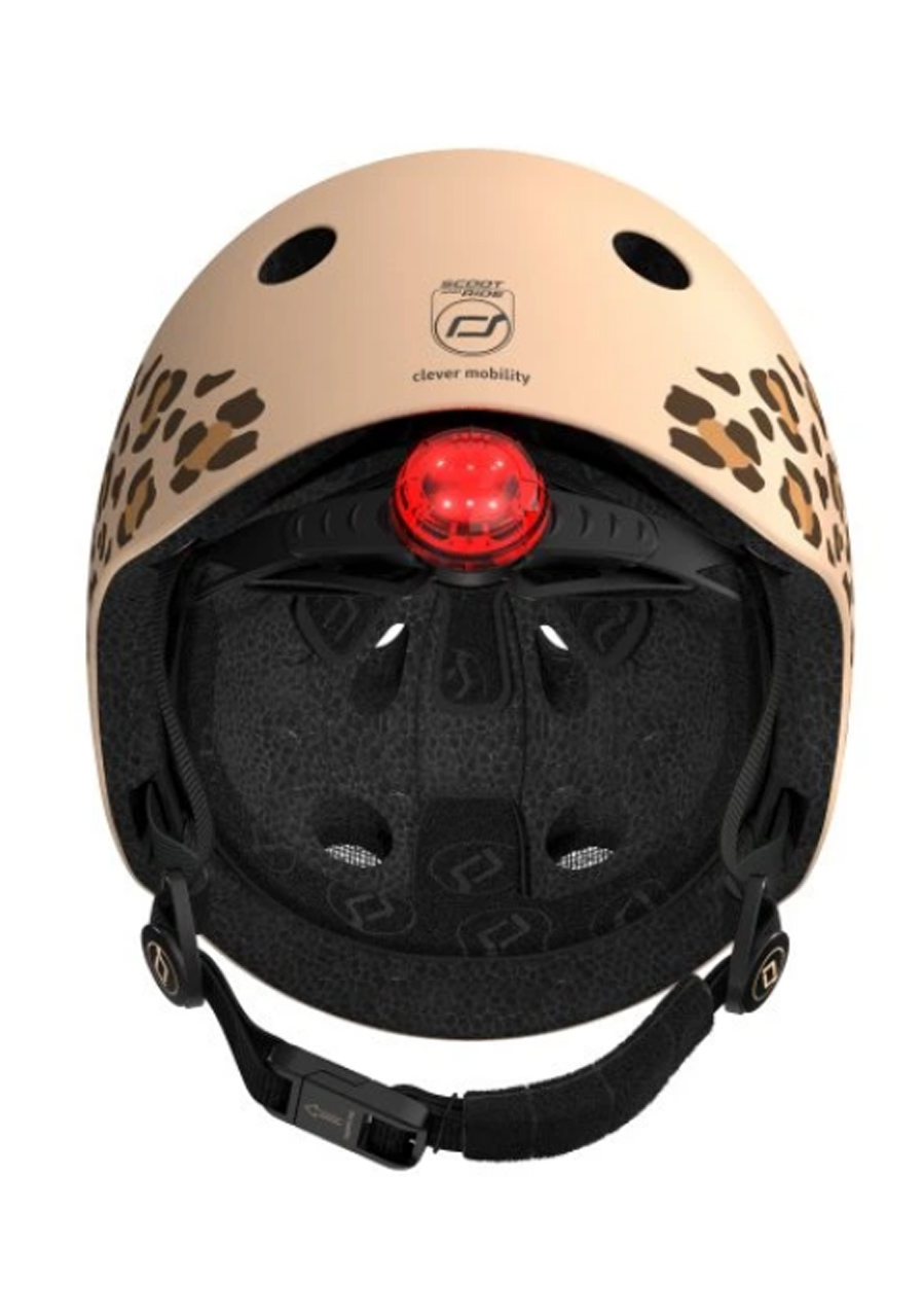 Technical Specifications Design: Leopard (warm-toned animal print) Size: XXS (head circumference 45–51 cm) Recommended age: 1–4 years Weight: approx. 230 g Safety standards: EN 1078 Suitable for: balance bikes, scooters, kids' bicycles Equipment: integrated LED light, reflective details