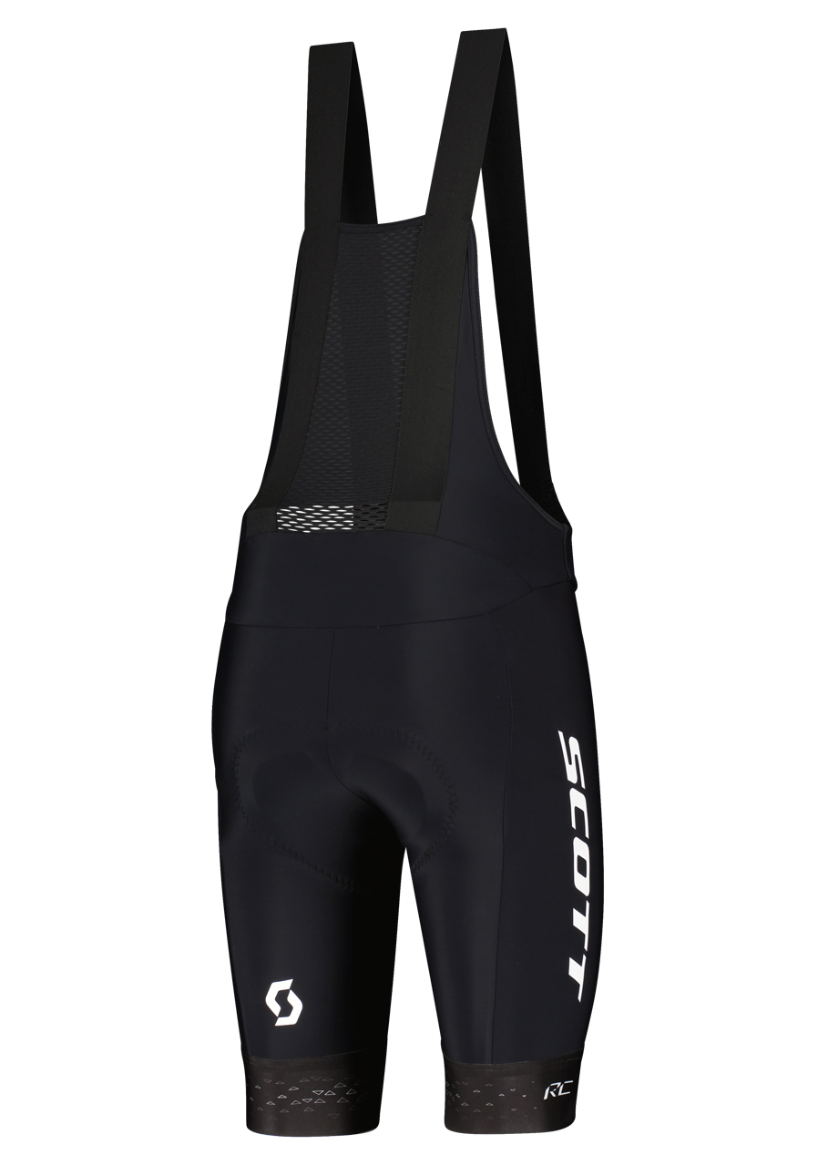 The SCOTT RC Pro +++ Black/White men's bibshorts offer sleek styling and high performance. With a slim-fitting silhouette, these bibshorts use DRYOxcell quick-dry and 4-way stretch DUROexpand fabrics to ensure moisture-wicking comfort and flexibility. Featuring the advanced SCOTT +++ Pro 2019 men’s chamois for top-level support and cushioning, these bibs are built for long rides. Breathable 3D mesh inserts enhance ventilation, while wide leg grippers with silicone ensure a secure fit. Tailored with a bib strap system specifically designed for men, these bibshorts are a top choice for competitive riders.