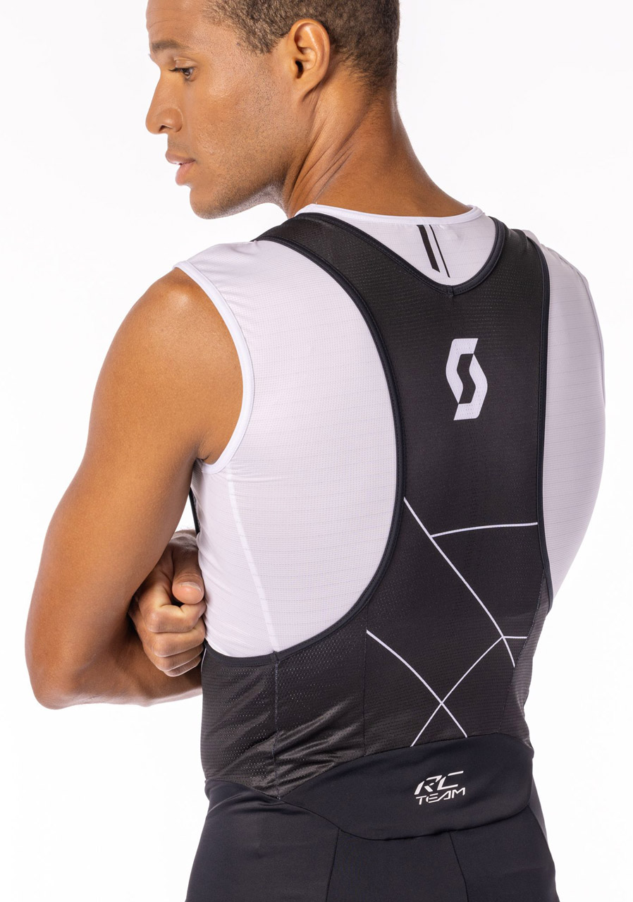 Men's SCOTT RC Team shorts with SCOTT ++ Performance cycling pad and breathable mesh suspenders ensure the necessary comfort during races. Thanks to the silicone on the lower hem, the shorts stay securely in place.