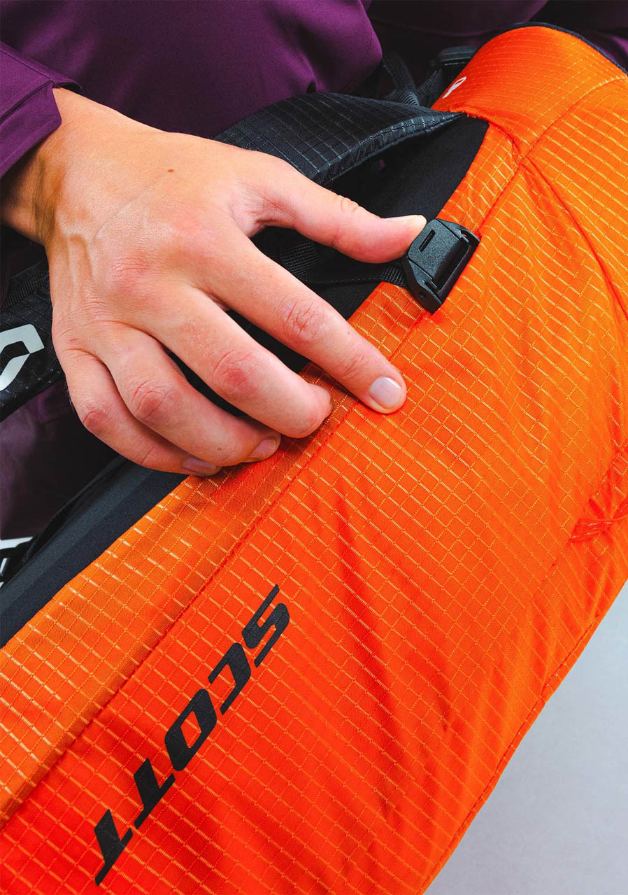 Attachment points for skis, snowboard, ice axe, and trekking poles