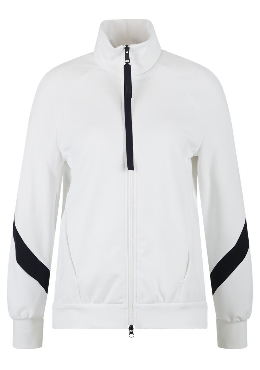This lightweight jacket stands out with its modern, active look and precise workmanship. The sporty scuba material hugs the figure nicely and ensures comfort while wearing, while the tight cut accentuates the silhouette. Raglan sleeves with contrasting color inserts underline the dynamic character of the model. A striking design element is the large laser-cut motif on the back in a contrasting color, which gives the jacket an original and contemporary expression typical of Sportalm.