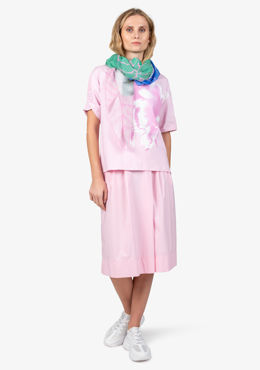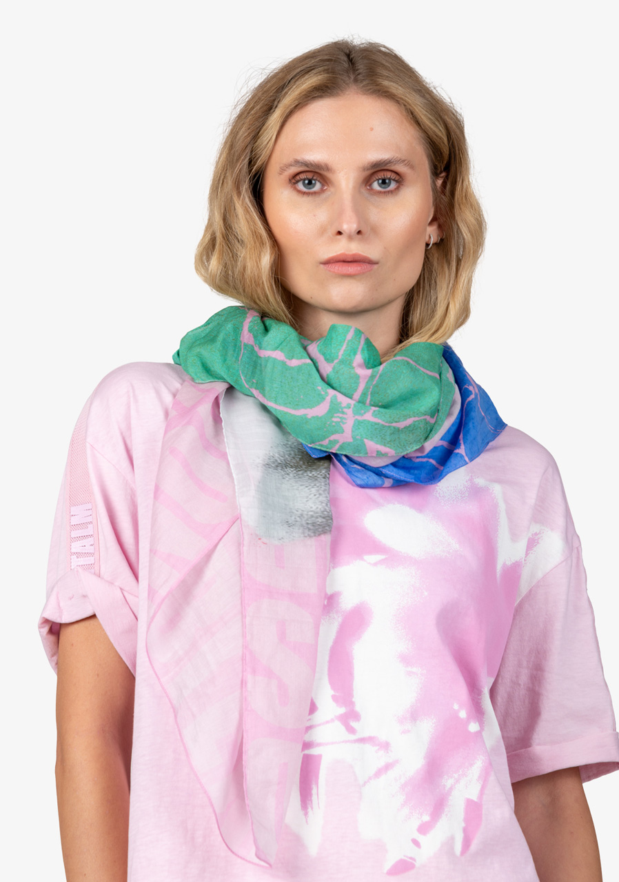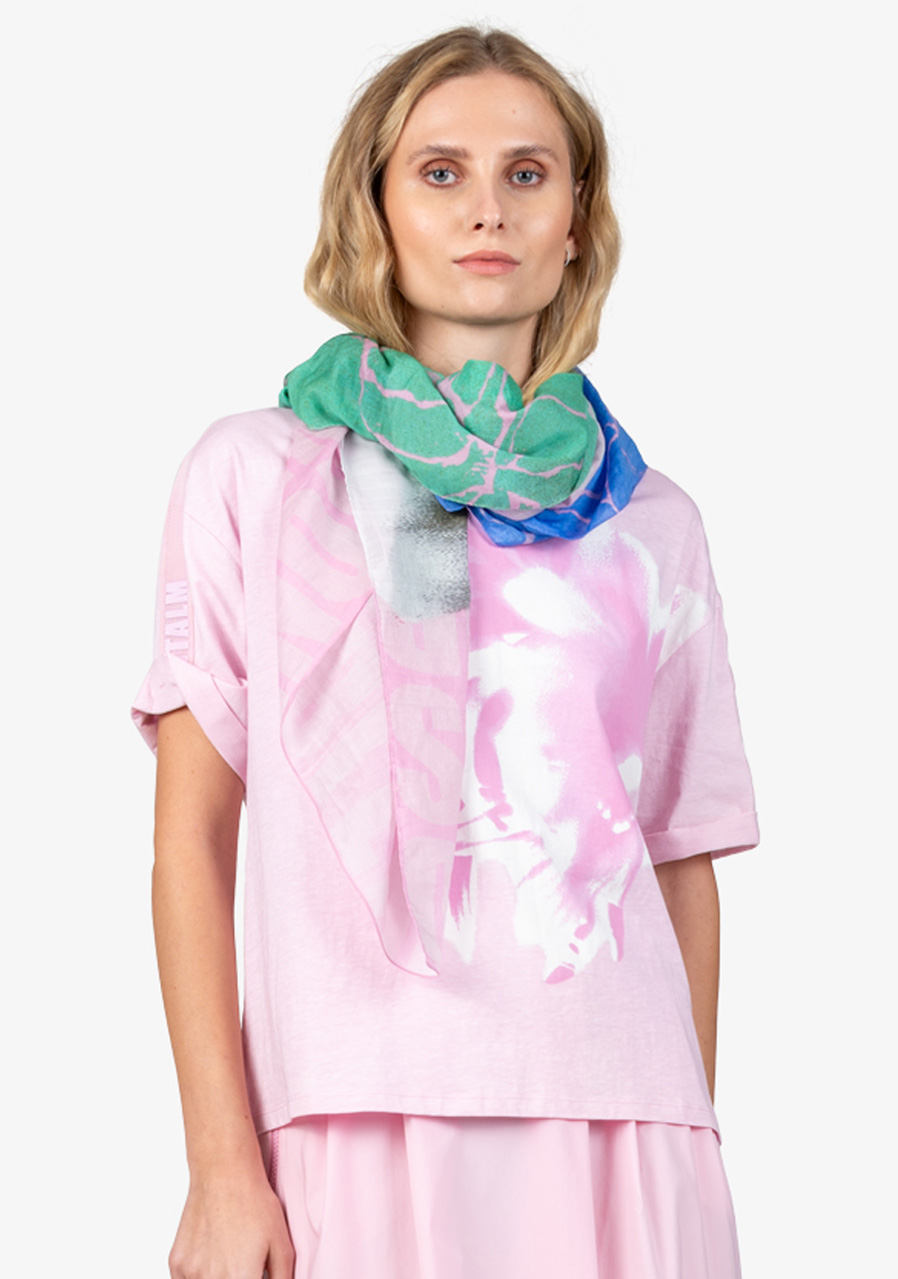 Dámský elegantní šátek z jemné hedvábné směsi s moderním květinovým potiskem. Vhodný na každé roční období, přidá vašemu outfitu nádech elegance a vytříbené krásy.