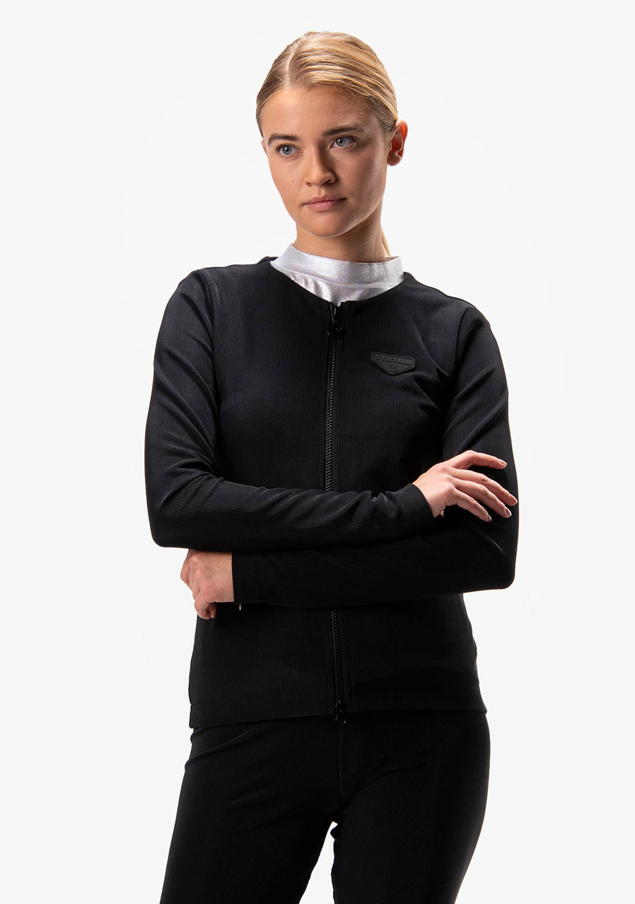 - dámská módní sportovní bunda z elegantního lesklého žebrovaného žerzeje