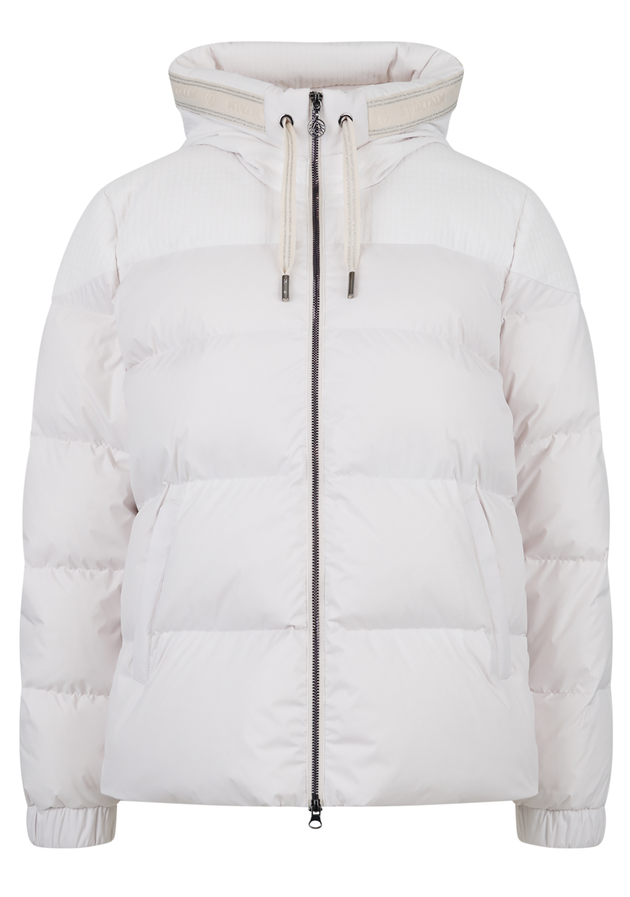 Additional parameters: Material: high-quality nylon Fit: casual Style: fashionable, feminine Hood: with knitted trim and drawstring Sleeves: with hidden soft elastic cuffs Closure: visible two-way zipper at the front center Pockets: piped pockets Highlight: inner drawstring hem, lined