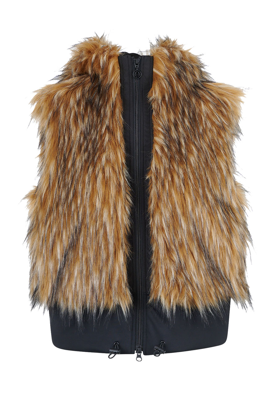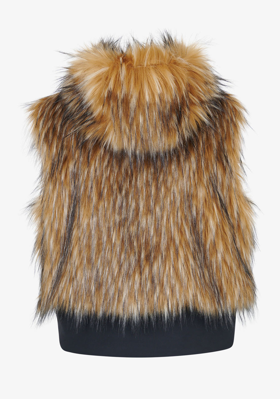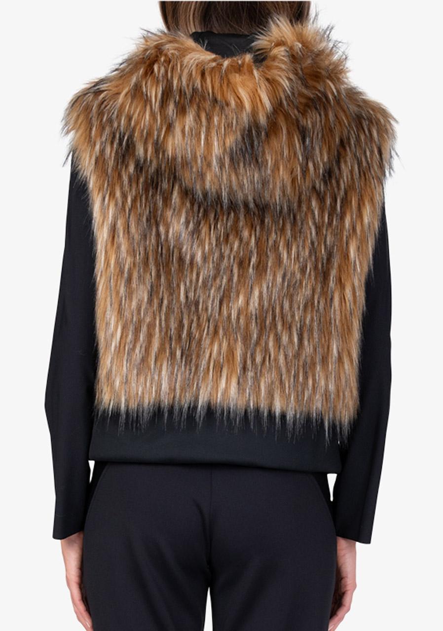 The Sportalm Faux Fur Vest with Hood is a luxurious accessory that combines elegance, warmth and modern design. Made of soft faux fur in a Finnraccoon look combined with stretchy scuba material, it looks exclusive while remaining comfortable to wear. The hood gives the vest a casually stylish character, while the two-way zipper and side pockets increase practicality. The wide scuba hem with drawstring allows you to adjust the width of the bottom edge as needed. Thanks to the full lining and precise workmanship, this vest is ideal for layering and elegant winter outfits.