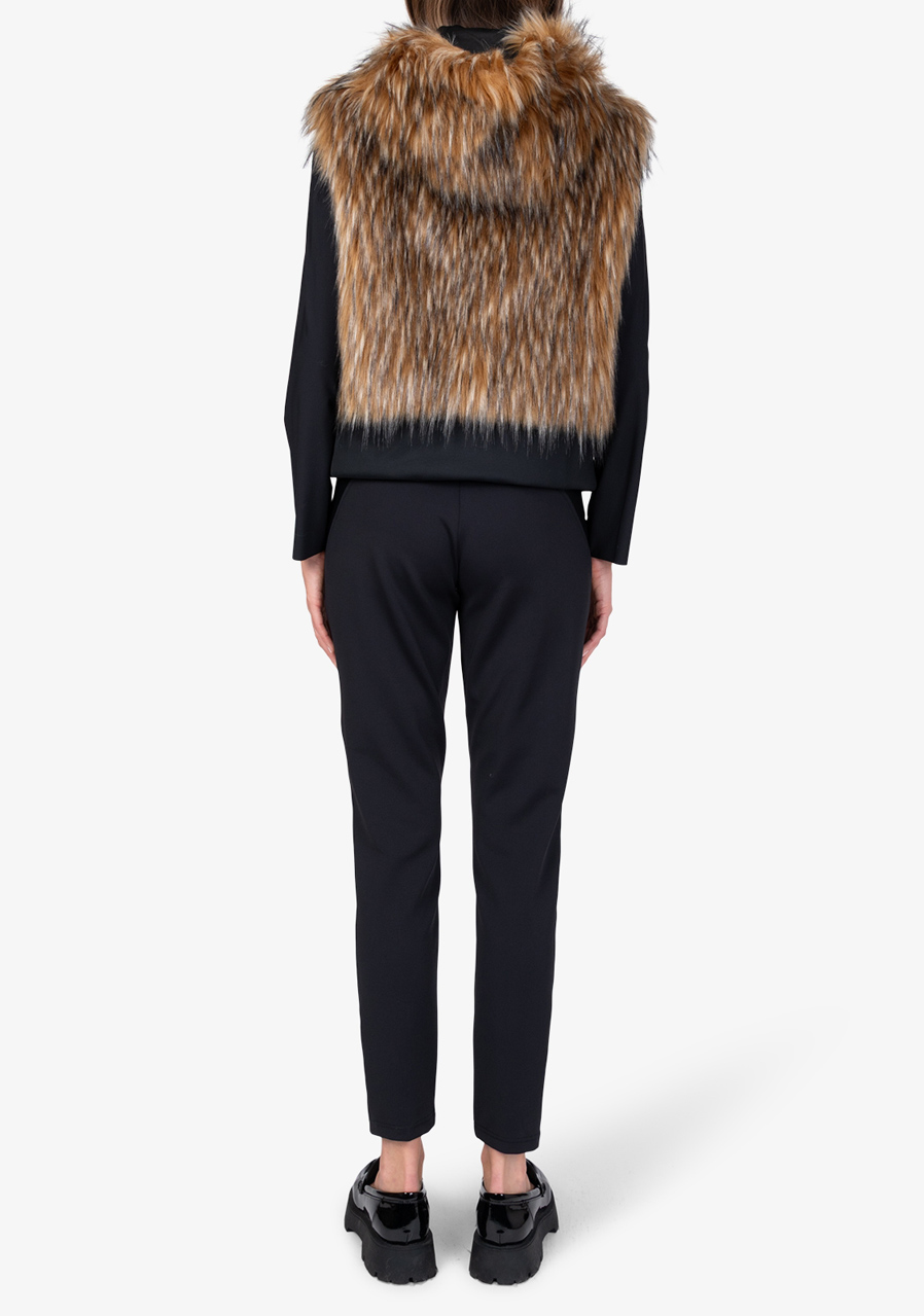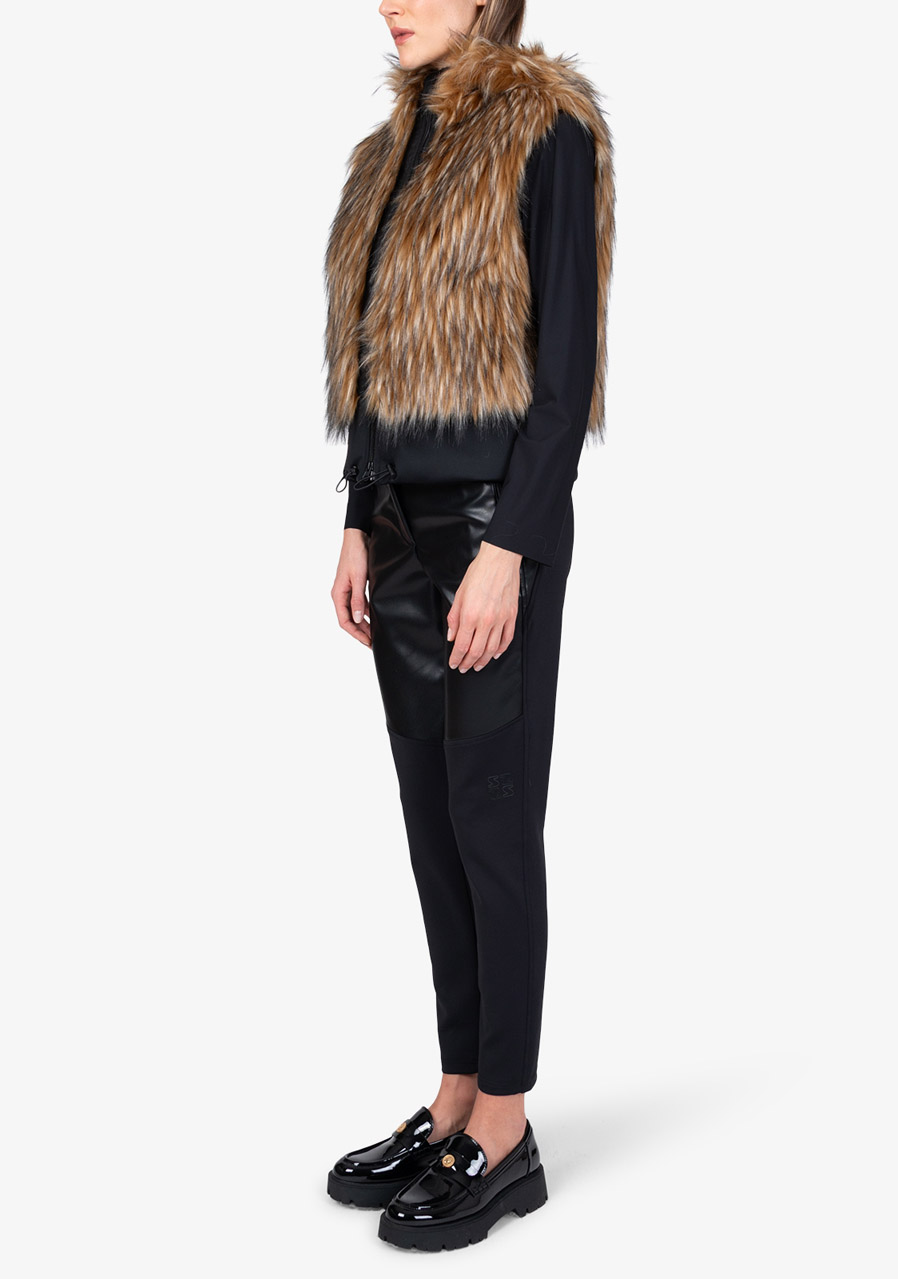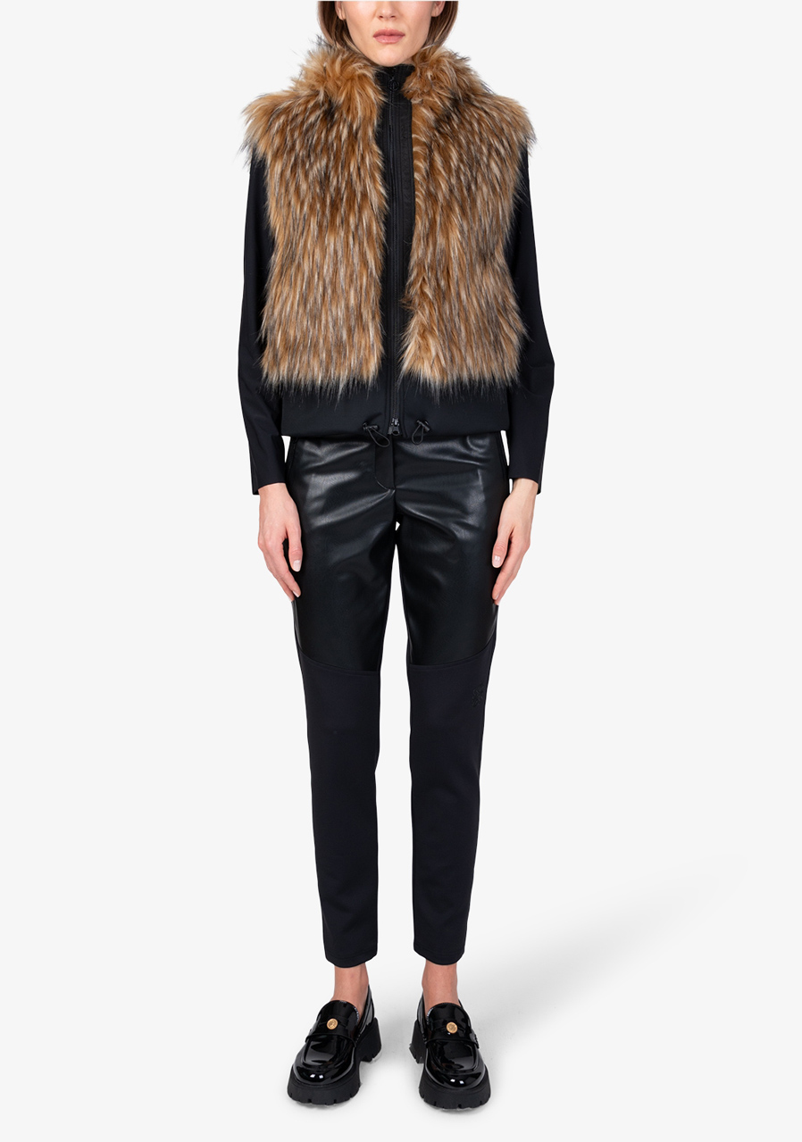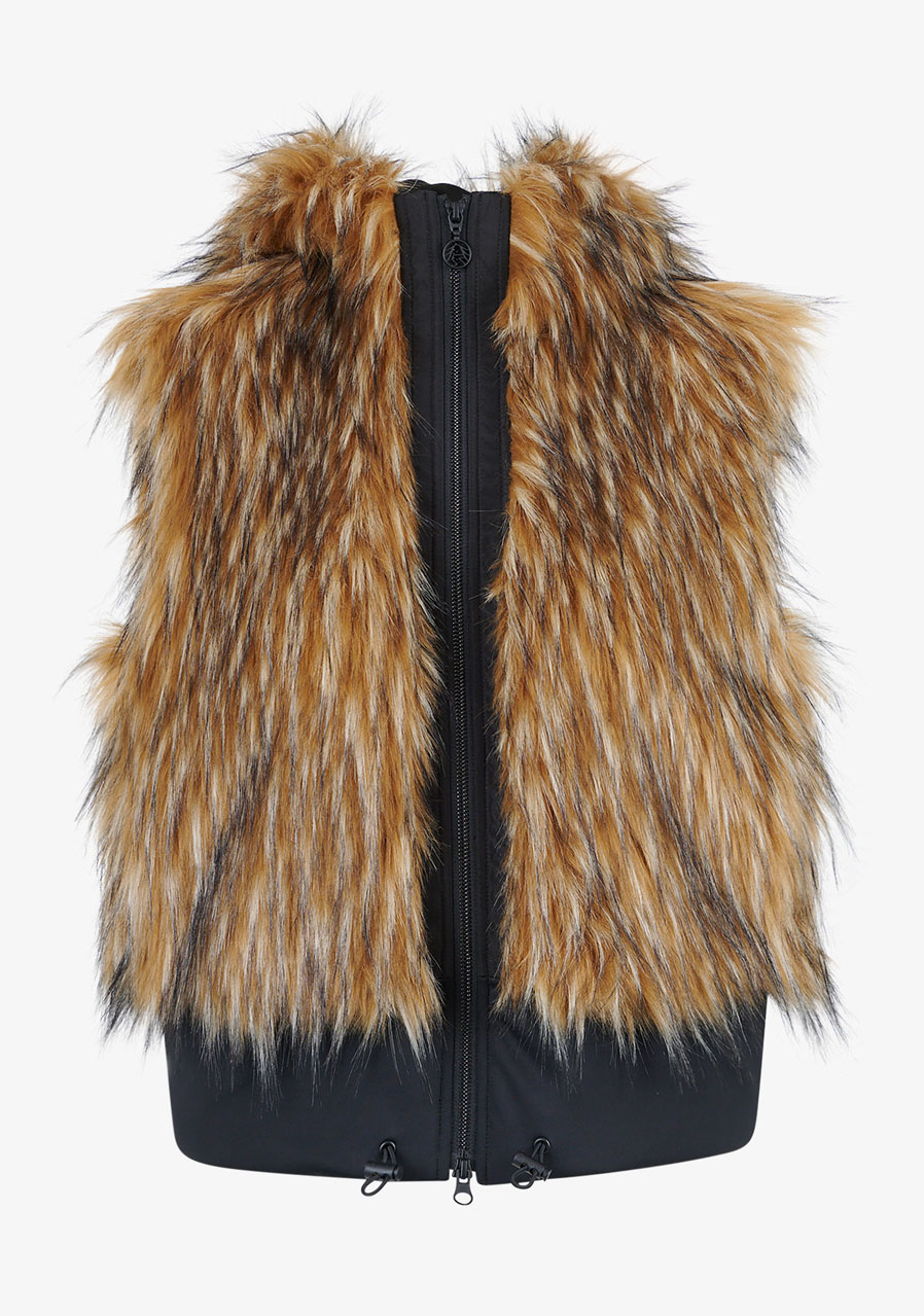 The Sportalm Faux Fur Vest with Hood is a luxurious accessory that combines elegance, warmth and modern design. Made of soft faux fur in a Finnraccoon look combined with stretchy scuba material, it looks exclusive while remaining comfortable to wear. The hood gives the vest a casually stylish character, while the two-way zipper and side pockets increase practicality. The wide scuba hem with drawstring allows you to adjust the width of the bottom edge as needed. Thanks to the full lining and precise workmanship, this vest is ideal for layering and elegant winter outfits.