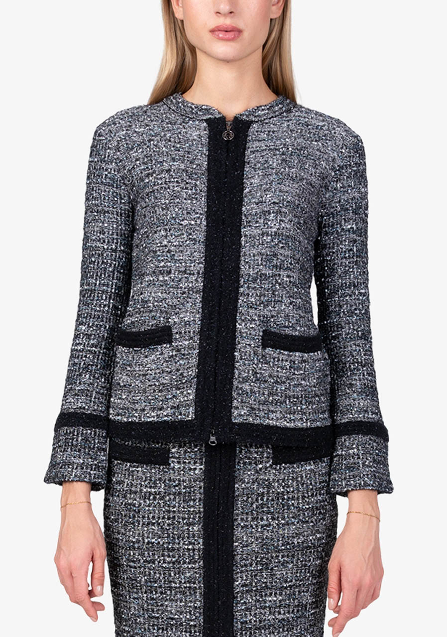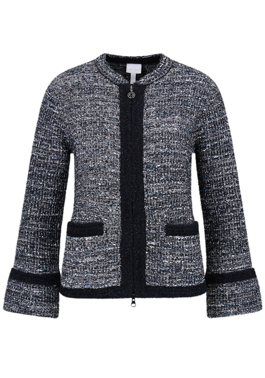 Additional specifications: Fit: softly body-hugging Style: modern, imaginative Neckline: stand-up collar Closure: two-way front zip Sleeves: long sleeves with tall hem finish Pockets: two front pockets