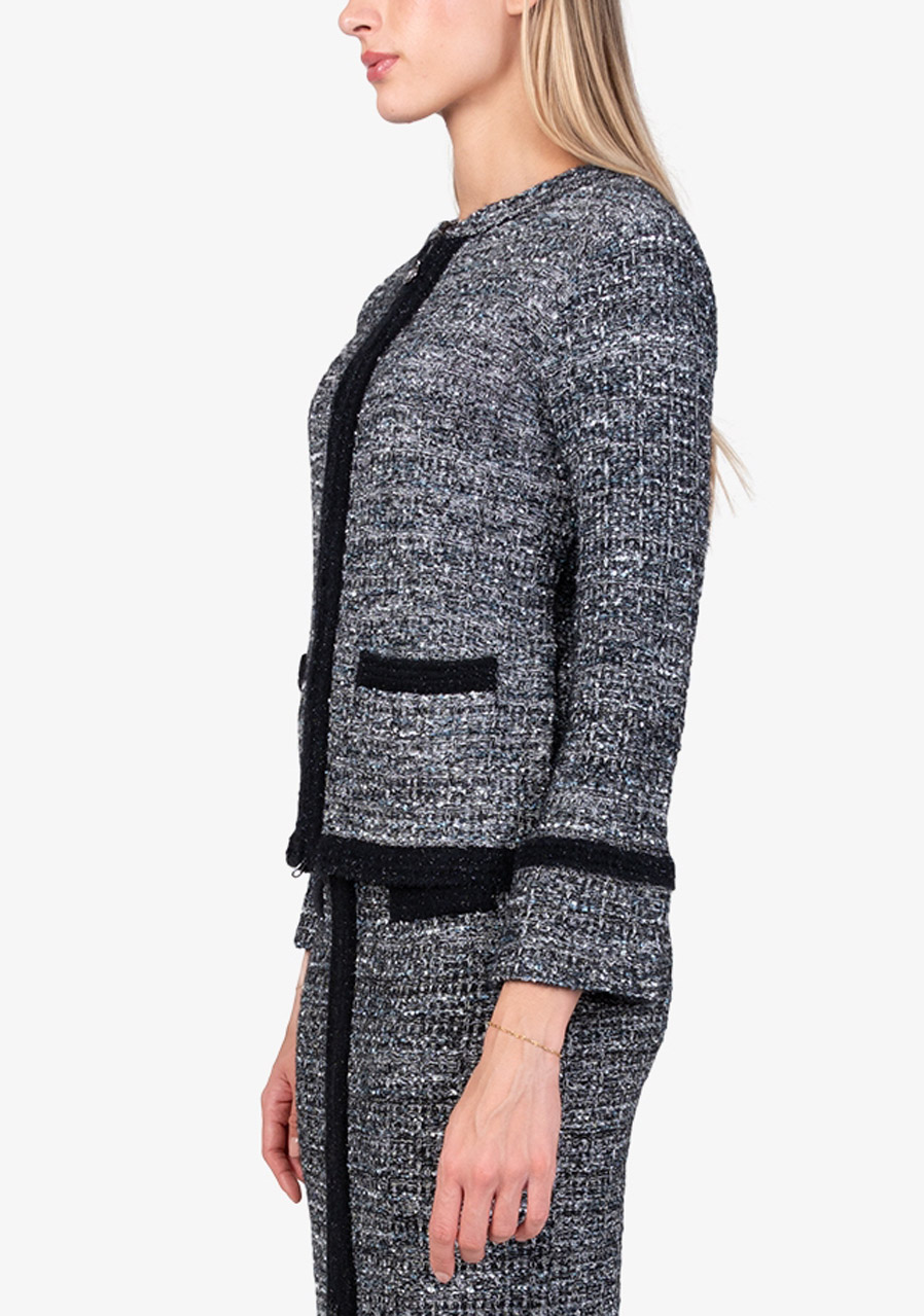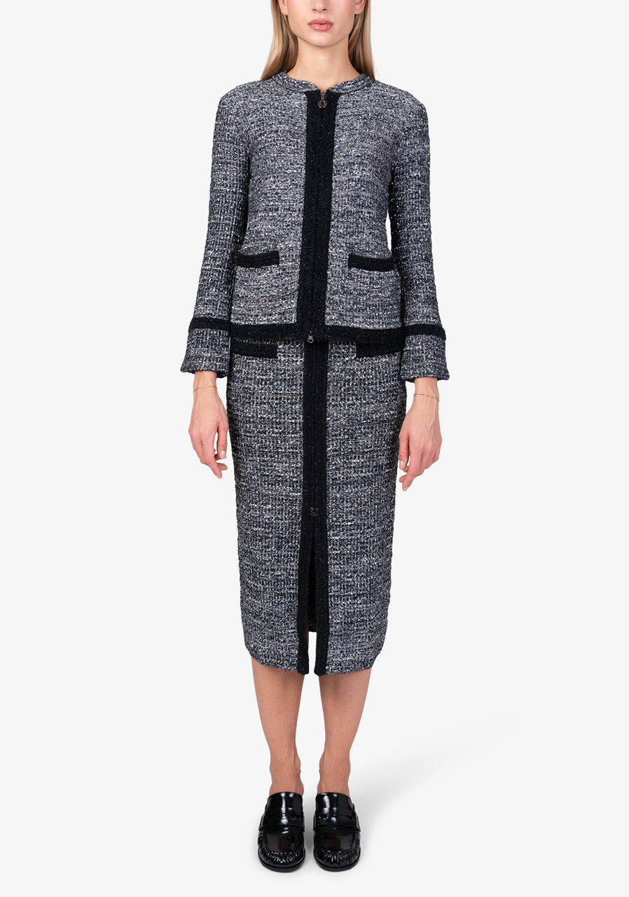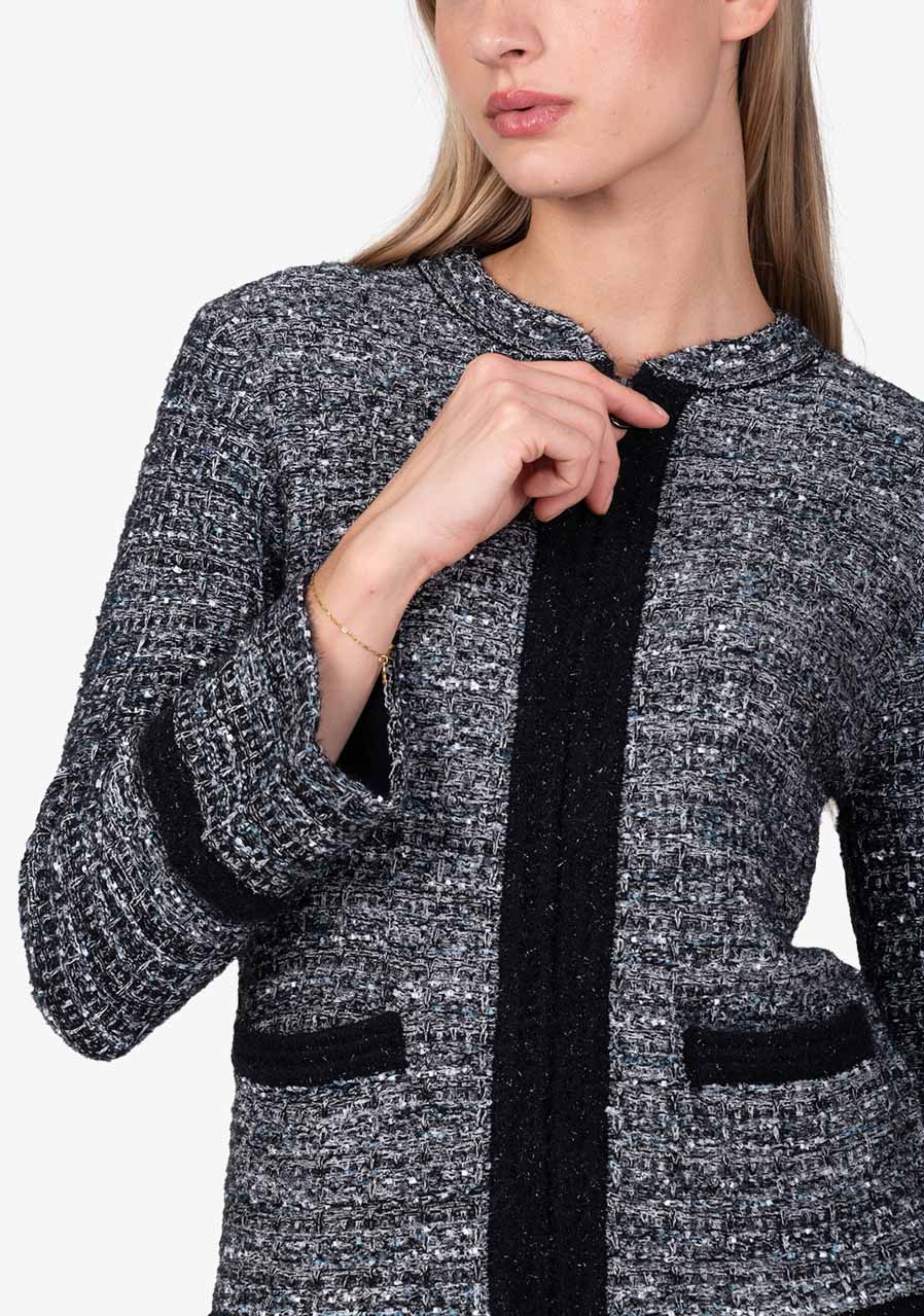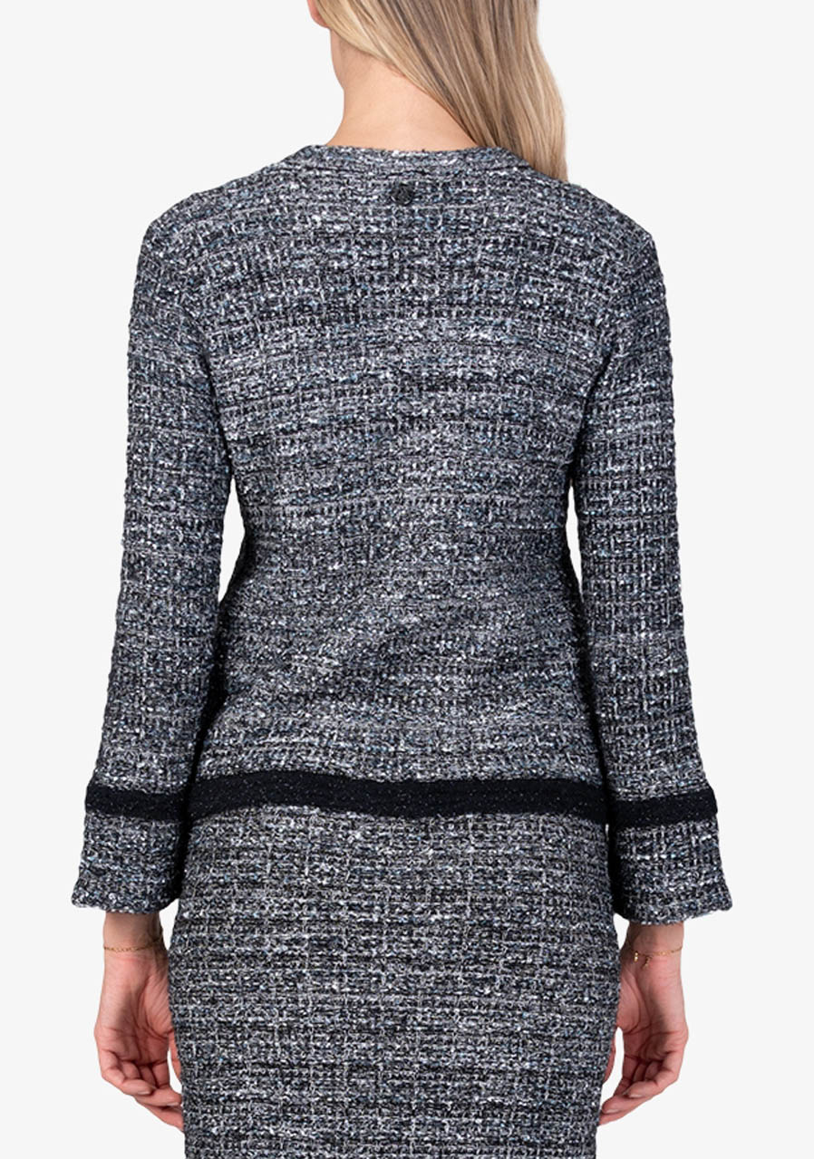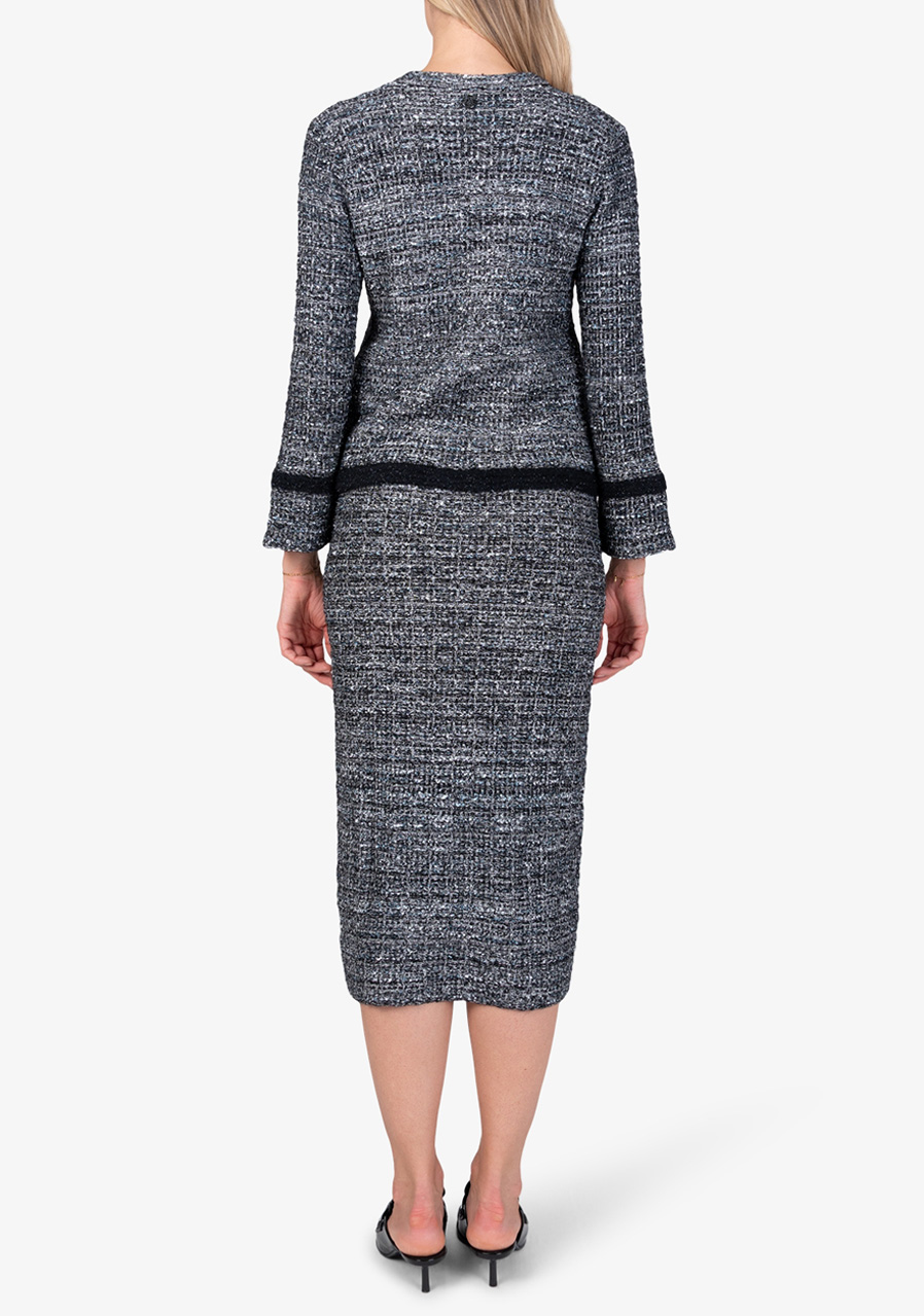 Material: 40% polyamide, 19% polyacrylic, 19% wool, 10% polyester, 7% viscose, 3% metallic fibers, 2% cotton Back length in size 36: 55 cm