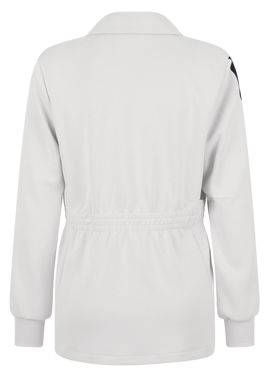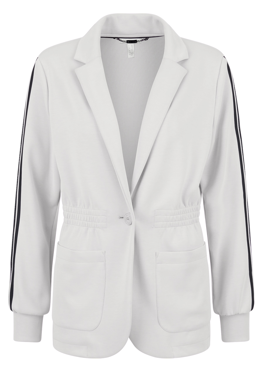 Additional features: Fit: casual Style: fashionable, sporty Collar: classic lapel Sleeves: long sleeves with cuffs Fastening: one front button Pockets: open front pockets Details: gently gathered at the waist with elastic, contrasting transfer tape on the sleeves, hem with cuffs and small slits, Sportalm logo on the left sleeve