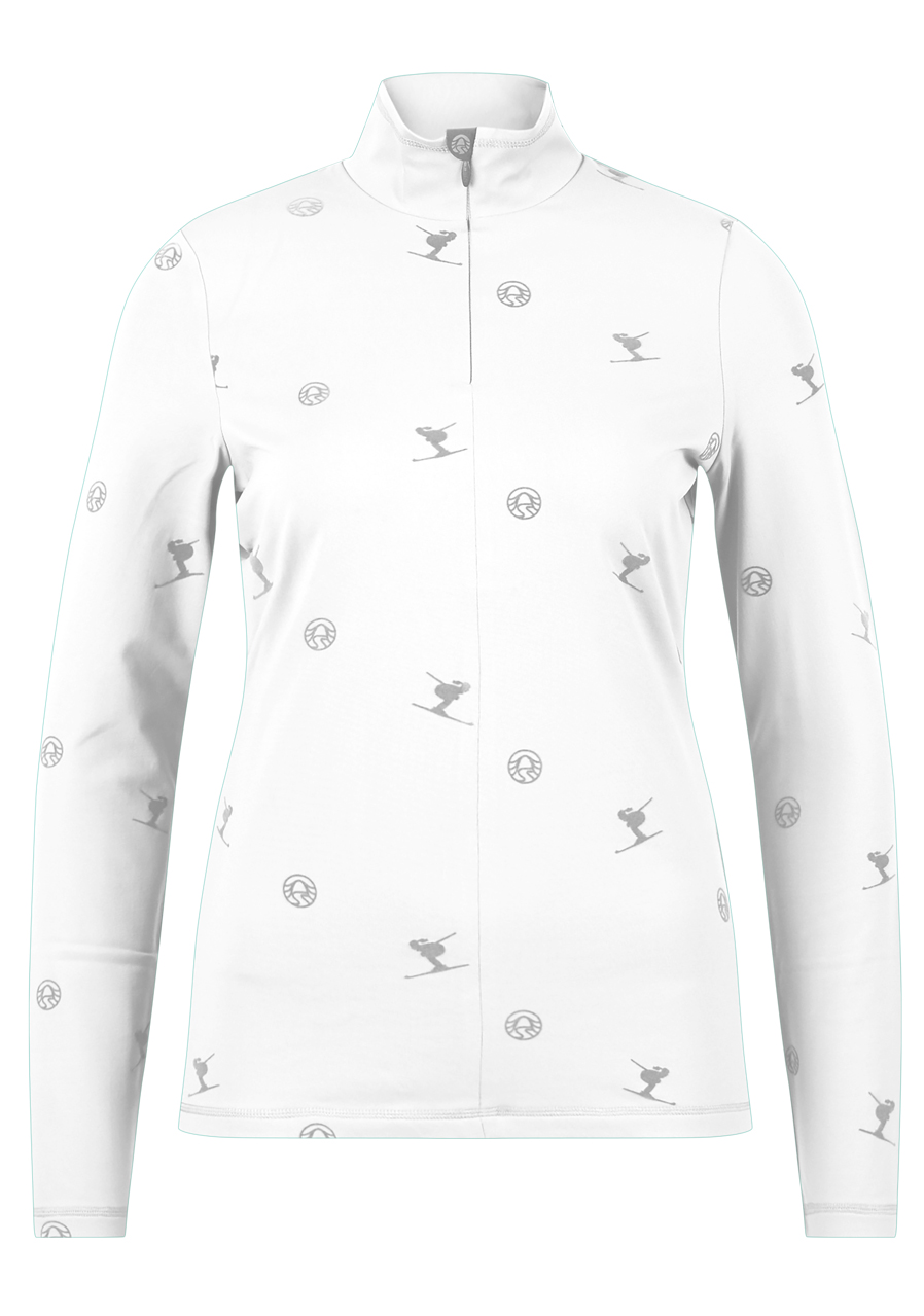 Parameters: Material : 95% polyester, 5% elastane Cut : tight, elastic Collar : turtleneck, comfortably hugging the neck Sleeves : long Design : monochrome white design (01) with subtle Sportalm details Season : all year round, suitable for layering and wearing alone