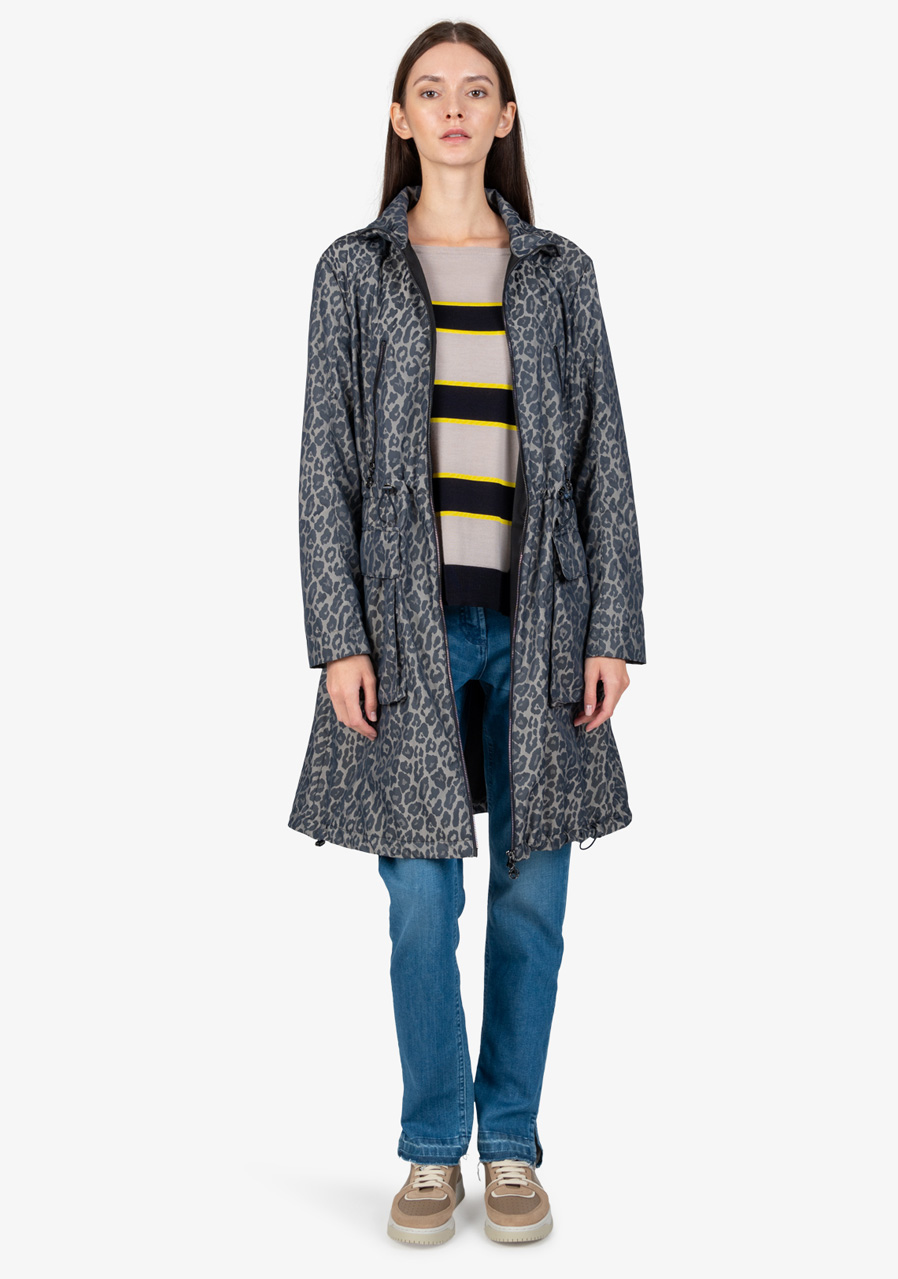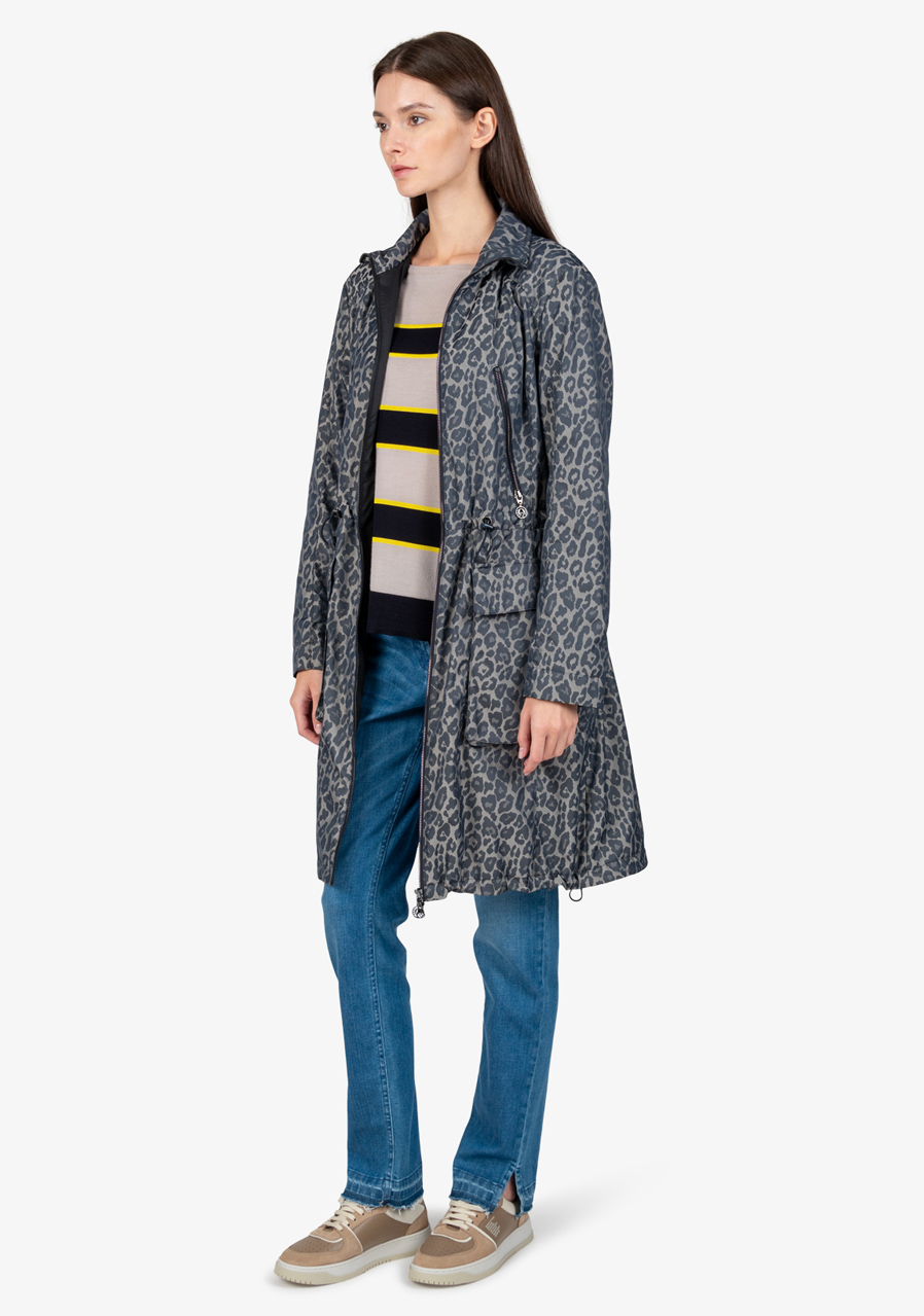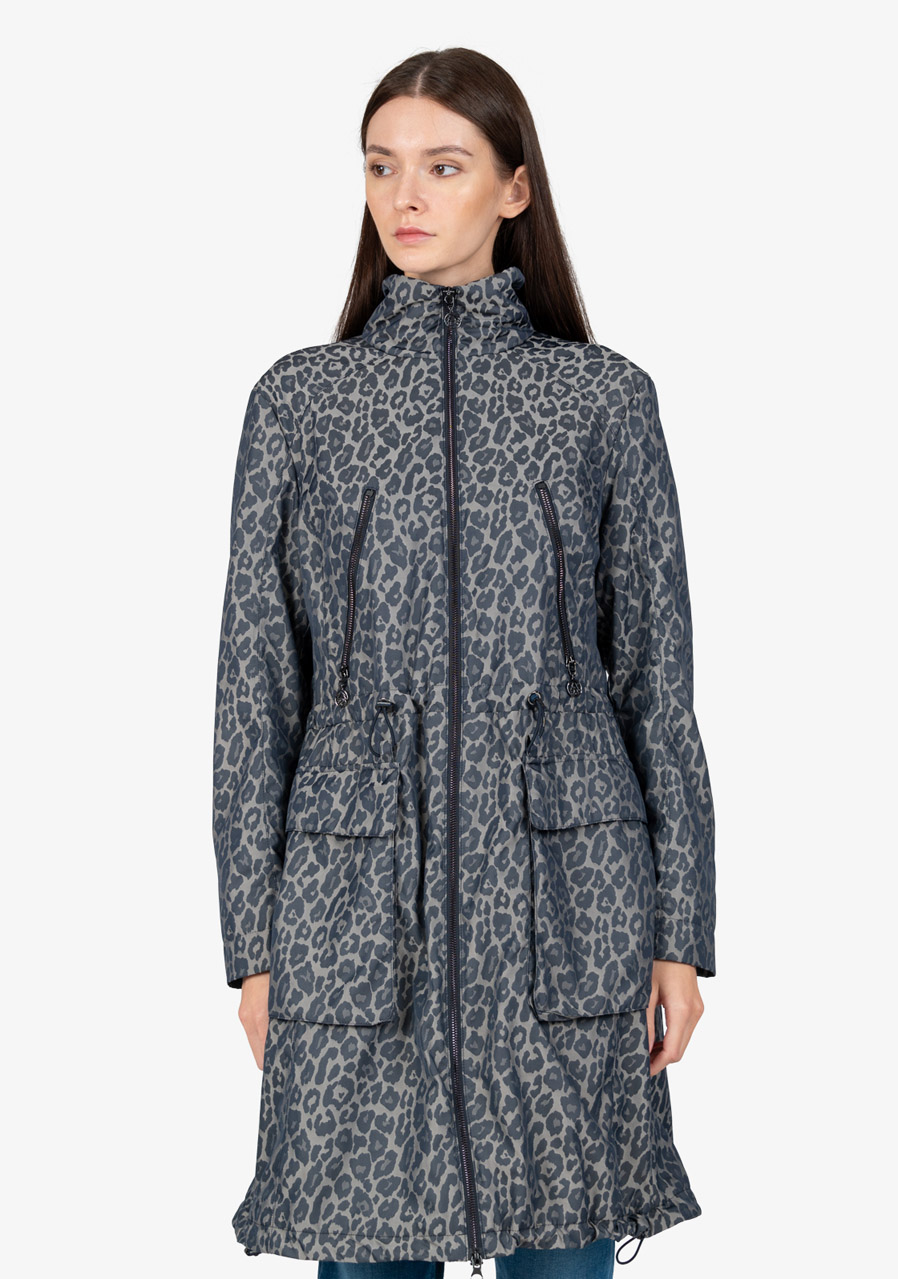 Dámský kabát Sportalm 100142 Dark Deep Water je moderní parka, která zaujme svým propracovaným designem a leopardím žakárovým vzorem. Tento lehký kabát z taftu kombinuje sportovní a elegantní vzhled s volným střihem, který zaručuje maximální pohodlí bez přidávání objemu.