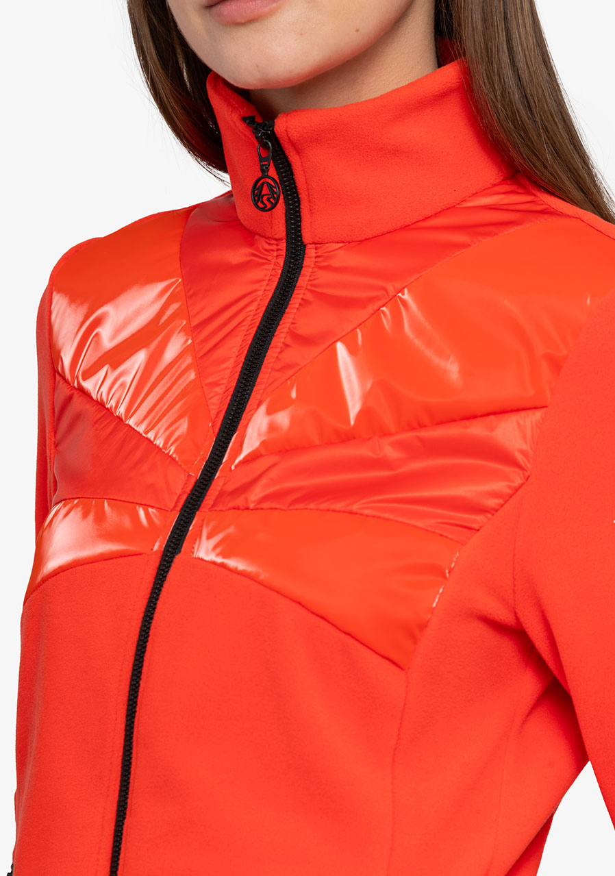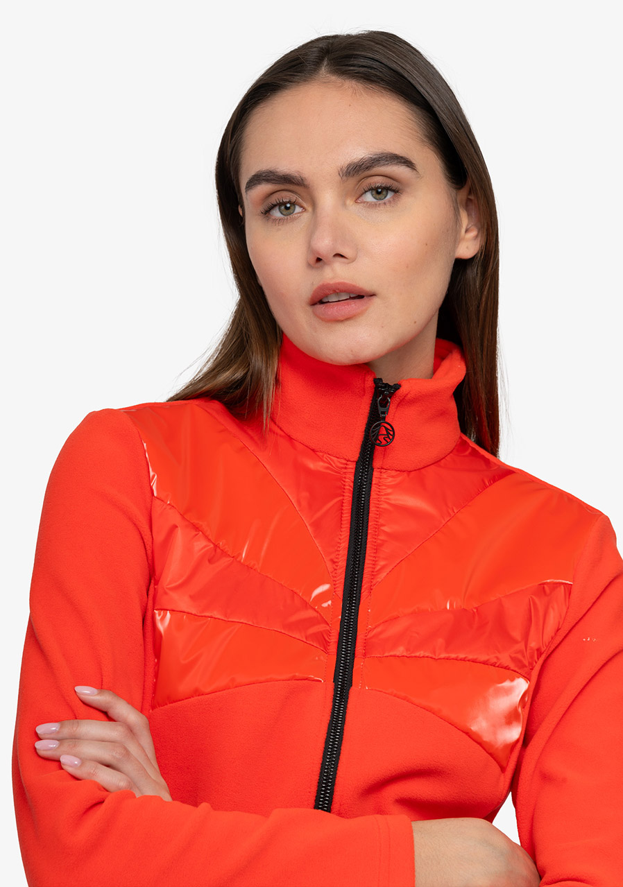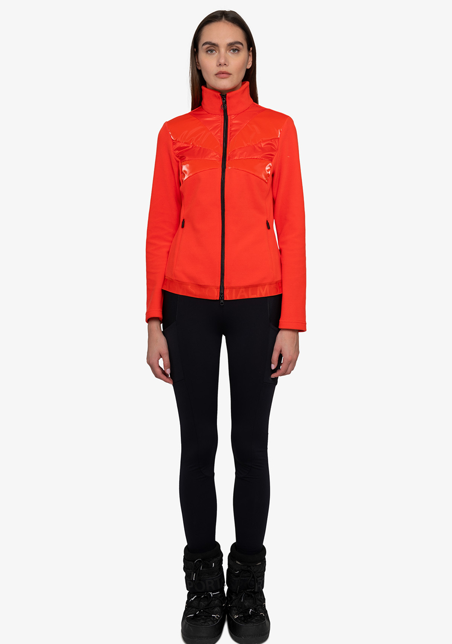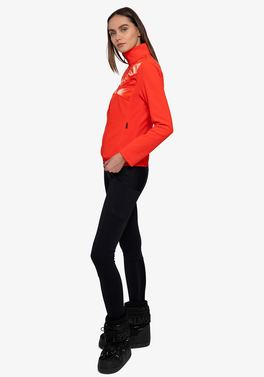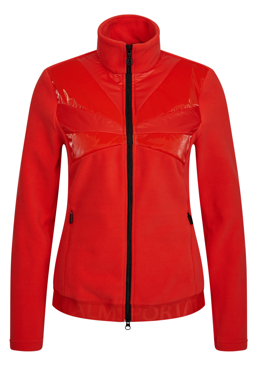Představujeme vám dámskou fleecovou mikinu Sportalm v živé barvě Paprika Flame, která kombinuje dynamický styl s maximálním pohodlím. Tato mikina je vyrobena z vysoce kvalitního recyklovaného polyesteru (93%) s příměsí elastanu (7%), což zajišťuje pružnost a příjemný pocit při nošení