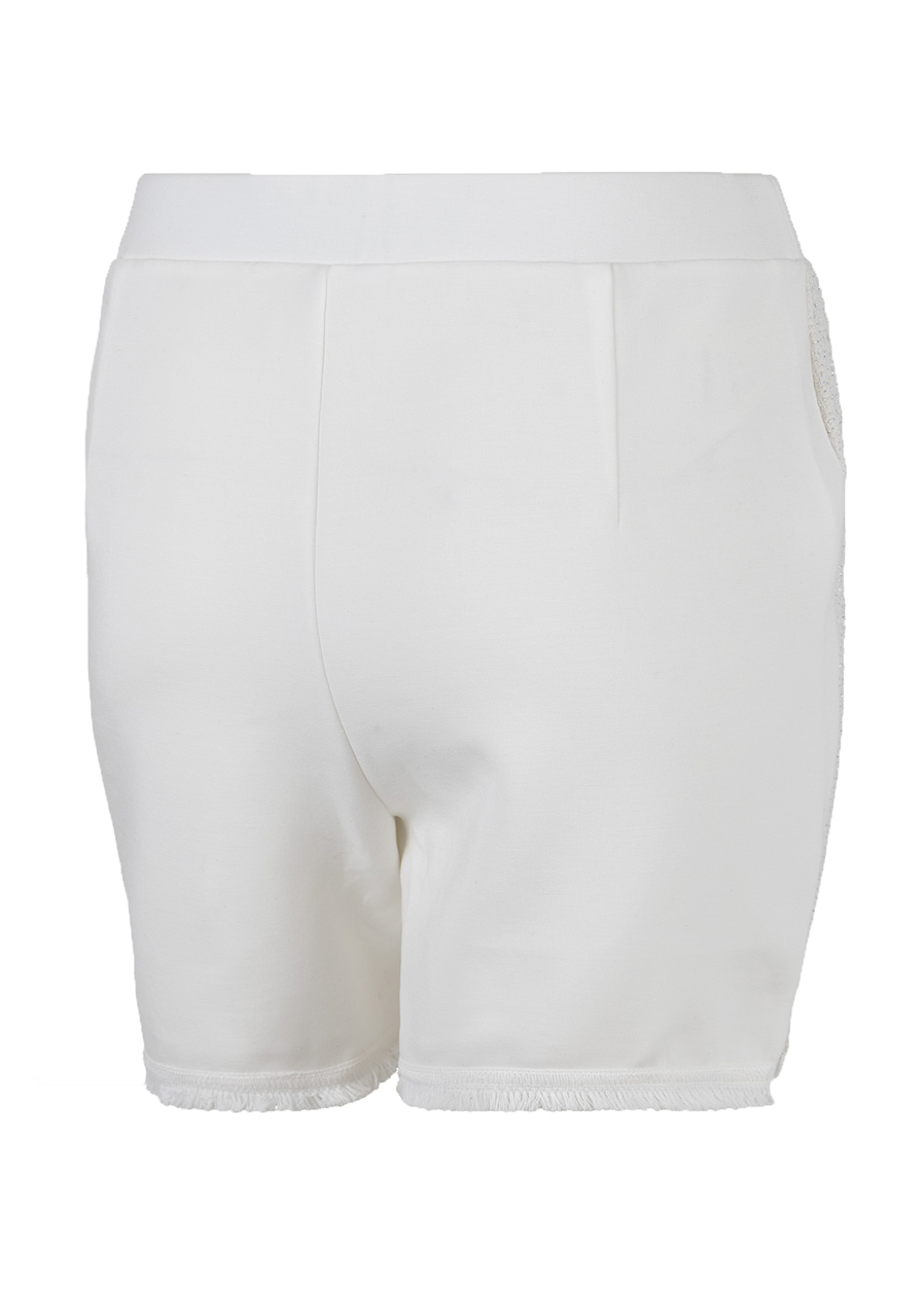 Sportovně elegantní kraťasy vyrobené z módní směsi materiálů s trendy třásněmi na lemu kombinují styl a pohodlí. Ideální pro ležérní volnočasové outfity a sportovní aktivity v teplých dnech.