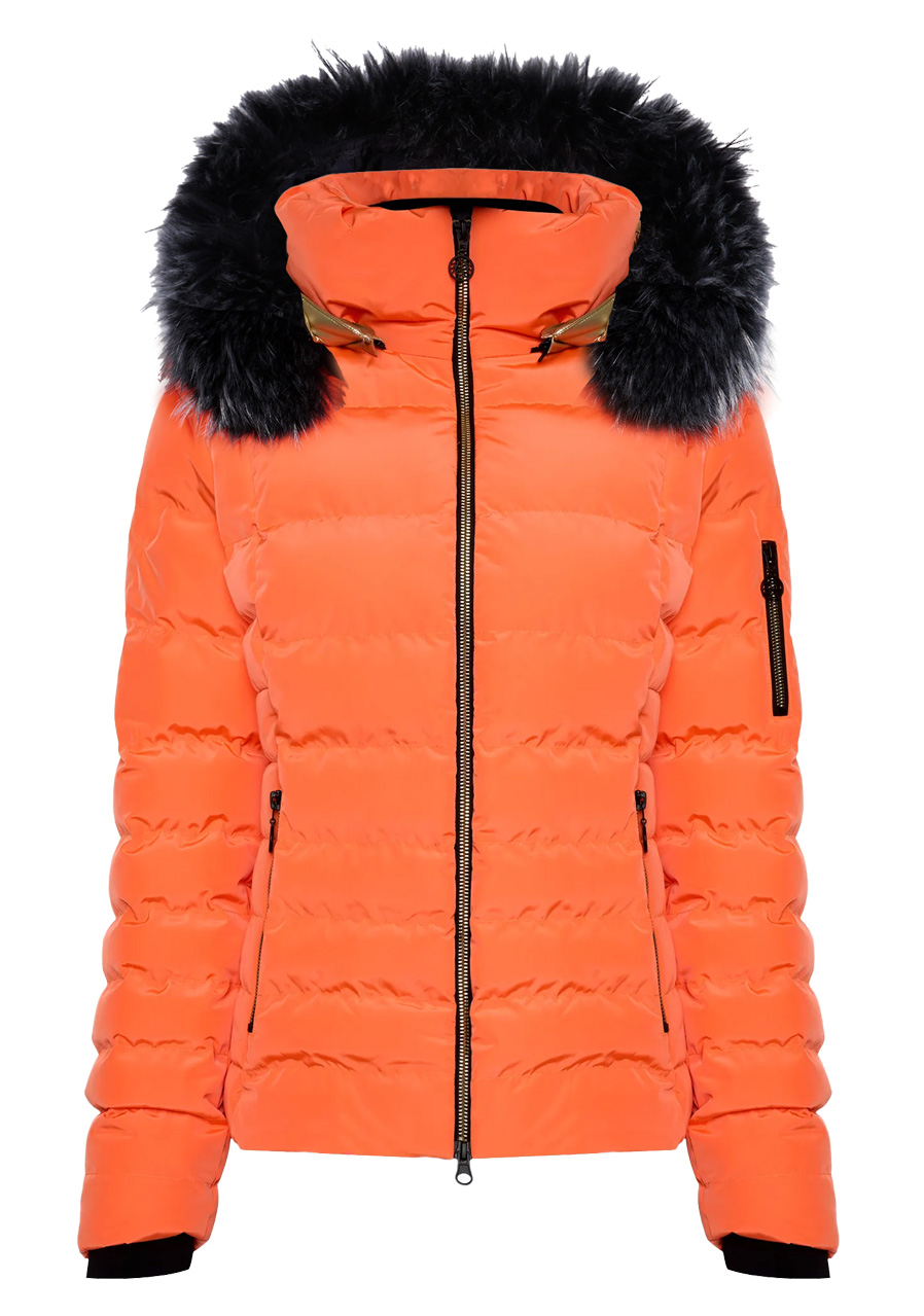 Tato luxusní dámská péřová bunda s kapucí a pravou kožešinou mývala je dokonalým spojením funkčnosti a stylu. Výrazný nylonový materiál s pruhy a kovovým páskem ve středu zadní části dodává bundě jedinečný vzhled. Ideální volba pro ženy, které vyžadují kvalitu a eleganci i v chladném počasí.