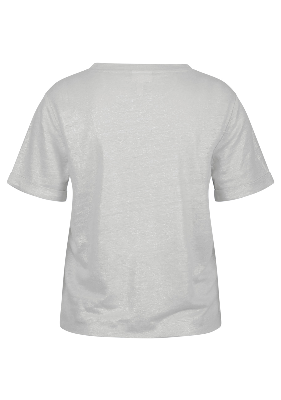 Tričko s kulatým výstřihem s krátkým rukávem je díky lehce třpytivému materiálu skutečným poutačem. Kombinuje nadčasovou eleganci s nádechem glamouru a je všestranná pro různé příležitosti.