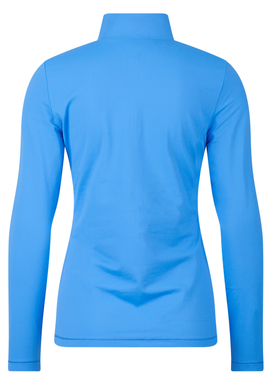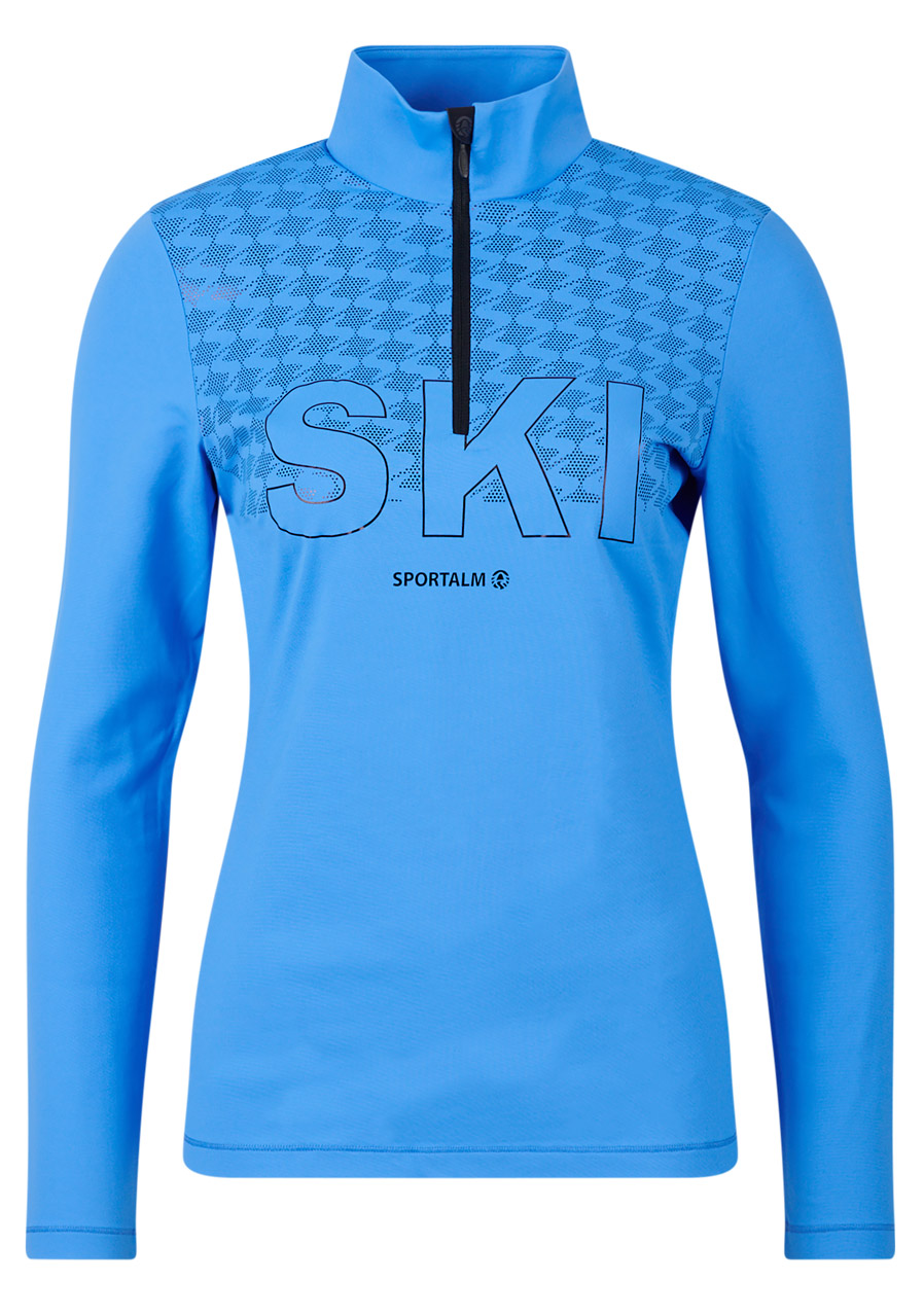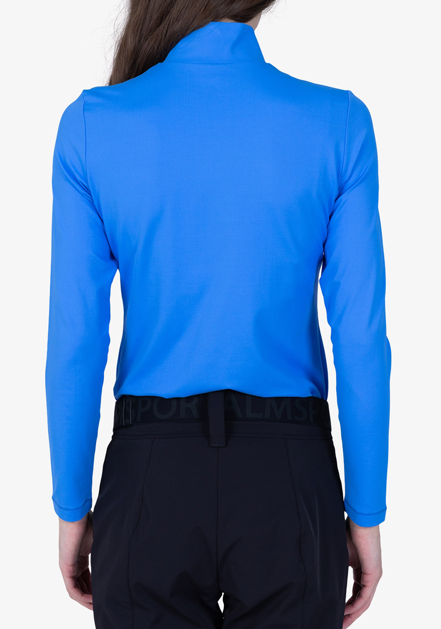 Parameters: Material : 95% polyester, 5% elastane Cut : tight, elastic Collar : turtleneck, comfortable and soft-fitting Sleeves : long Design : elegant blue shade Athens Blue (24) with subtle Sportalm details Season : all year round, suitable alone or for layering