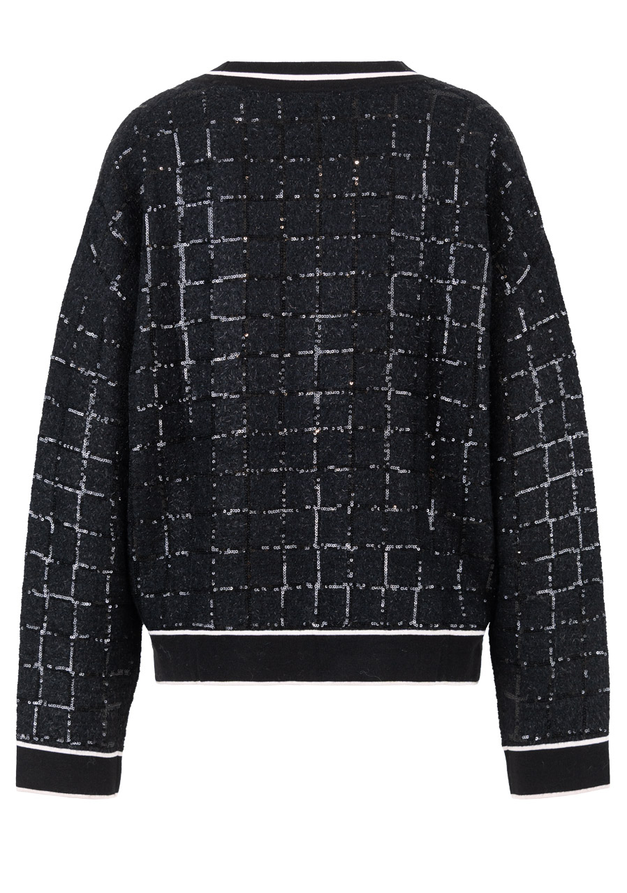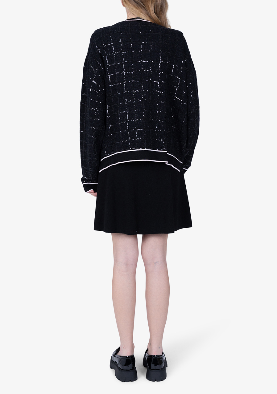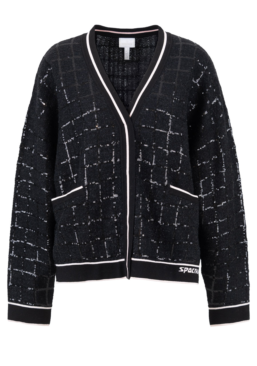 Details : checkered embroidery with sequins, contrasting hem with knitted Sportalm logo on the left, short side slits