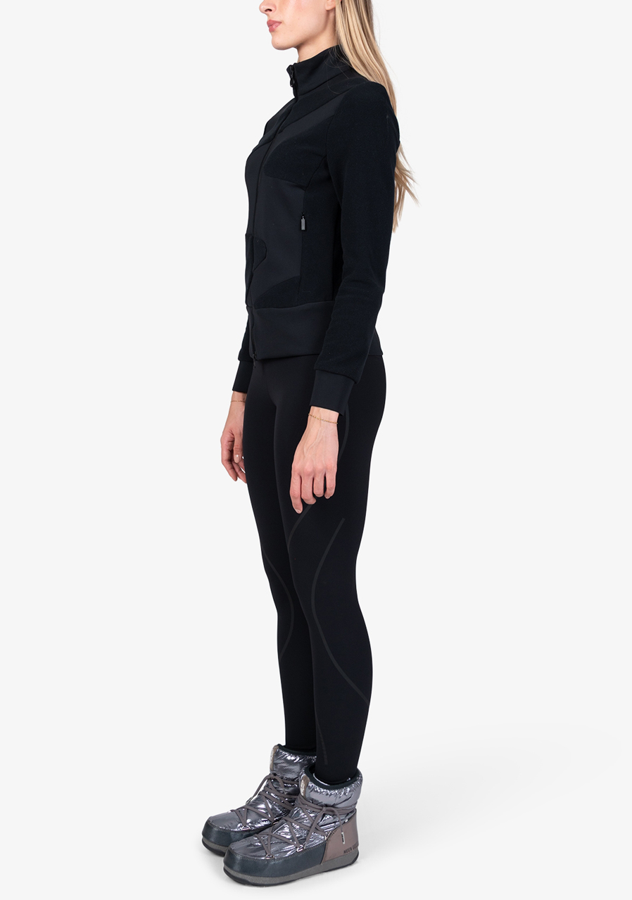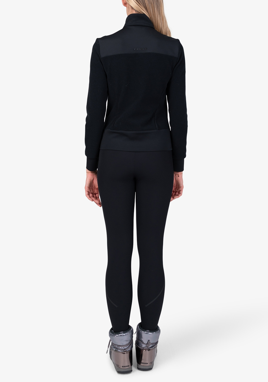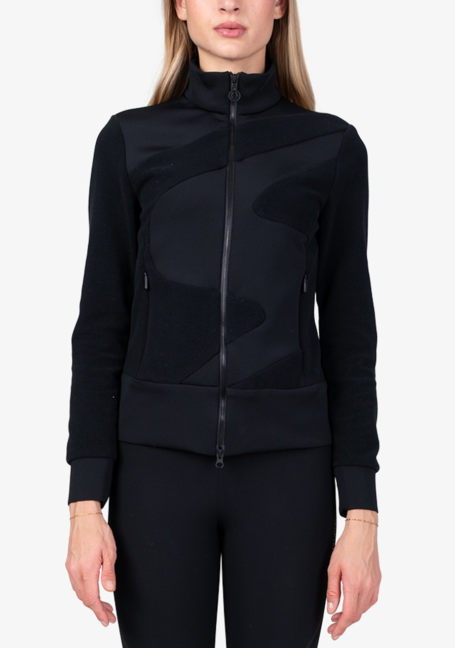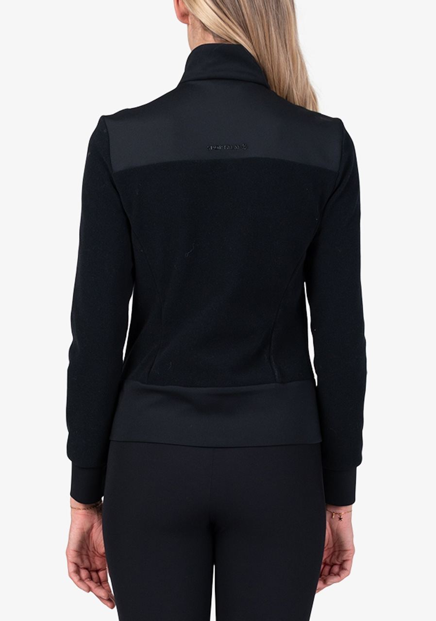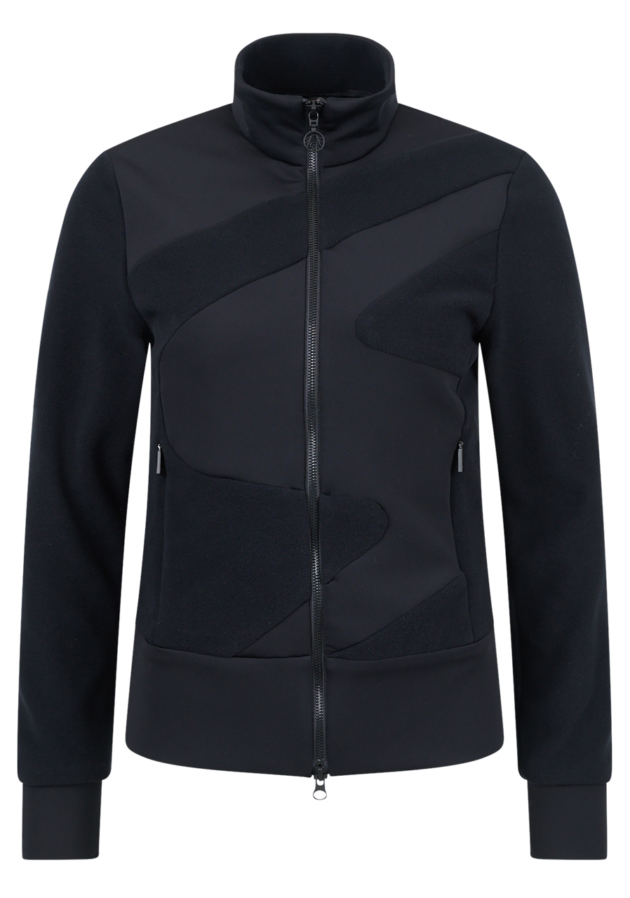 Parameters: Material : 95% polyester, 5% elastane Cut : comfortable, slightly fitted Hood : integrated with drawstring Closure : full-length zipper Pockets : two side zip pockets Design : monochrome black design (59) with luxurious Sportalm details Season : all year round, suitable for both wearing alone and layering