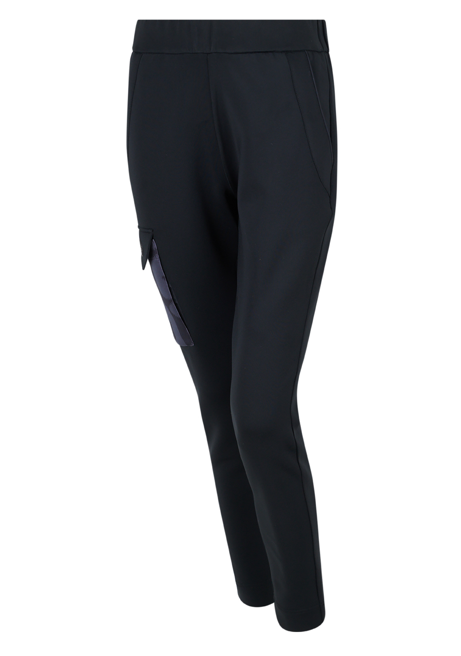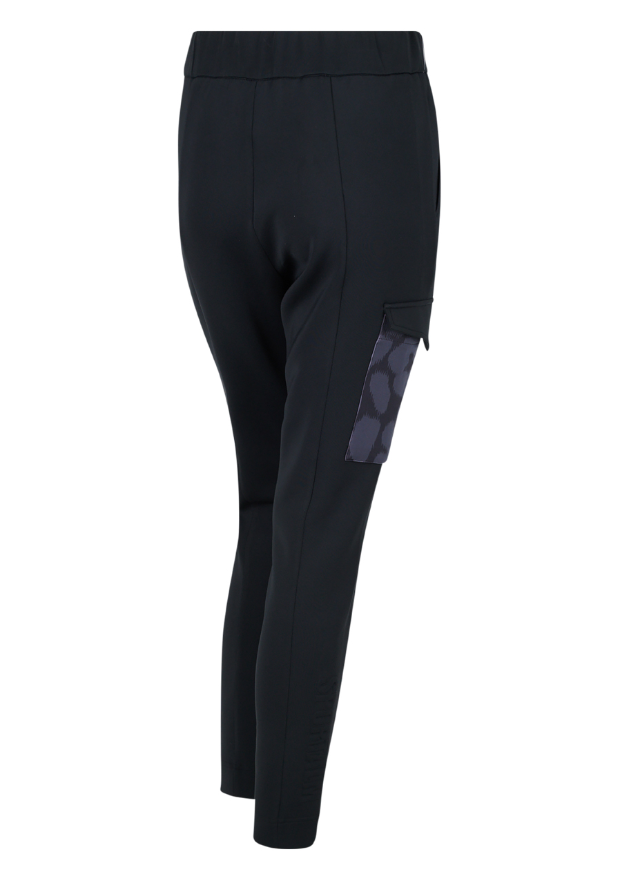 Additional parameters: Material: elastic trouser fabric Fit: relaxed, tapered at the bottom Style: modern, sporty Waist: soft waistband for easy wear Legs: straight with narrower hem Pockets: side welt pockets, right side pocket with flap and Sportalm logo Highlight: leopard print on the patch pocket, raised Sportalm lettering on the back of the right leg