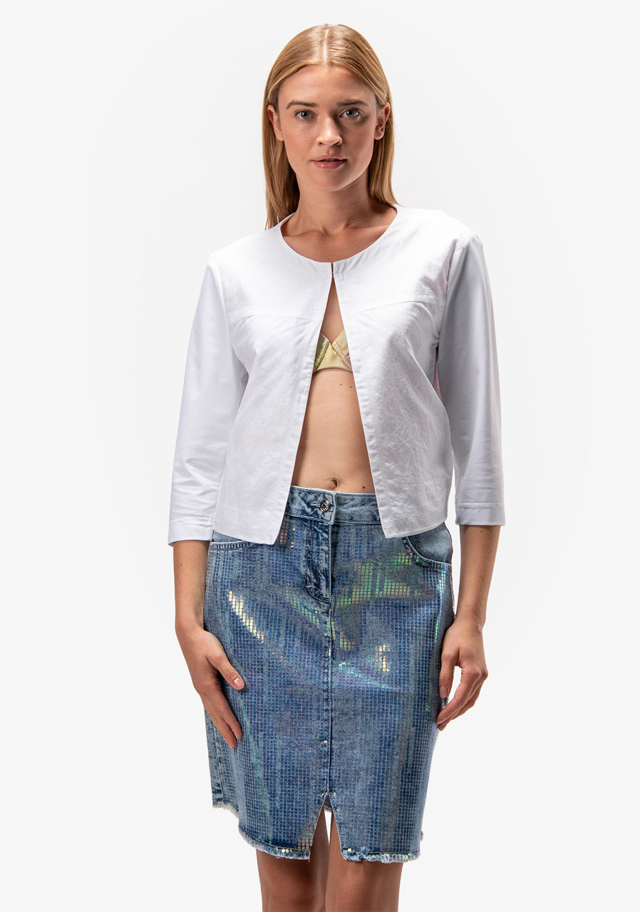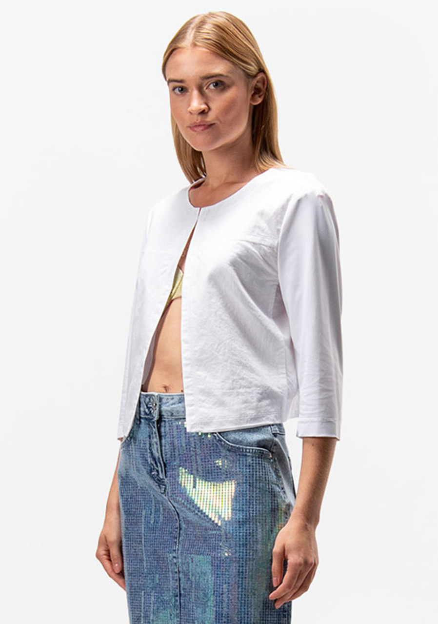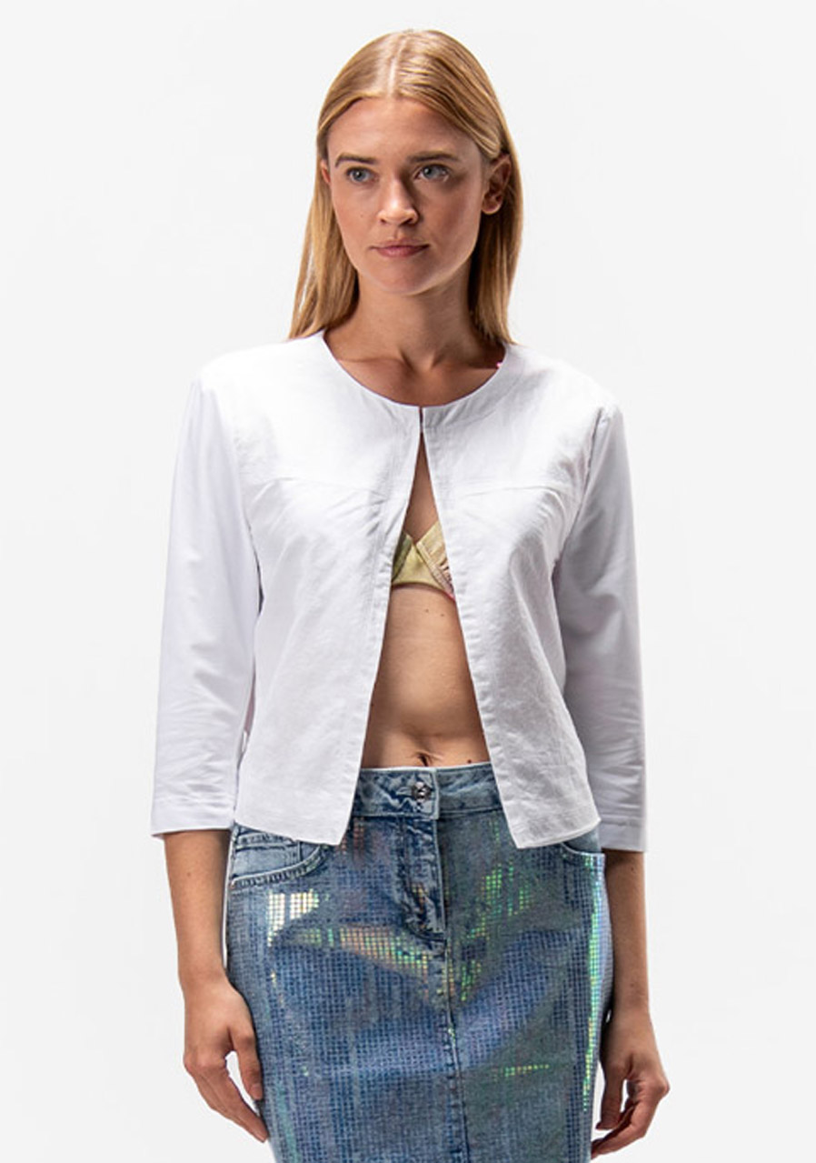 - dámské halenkové sako s kulatým výstřihem a zkrácenými rukávy