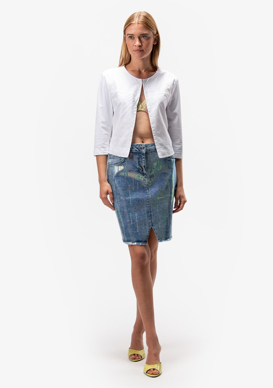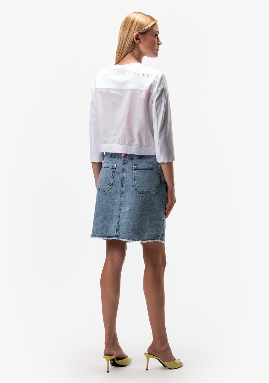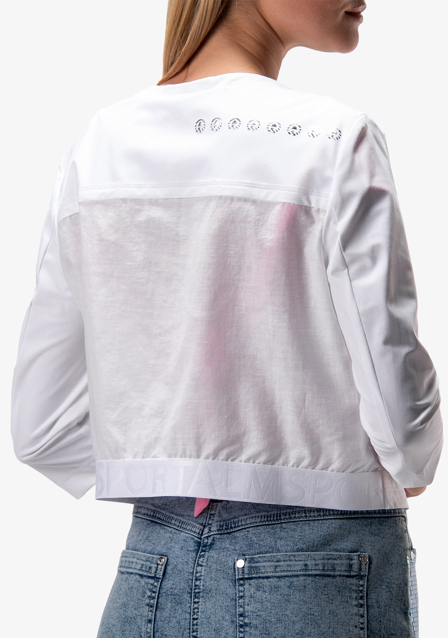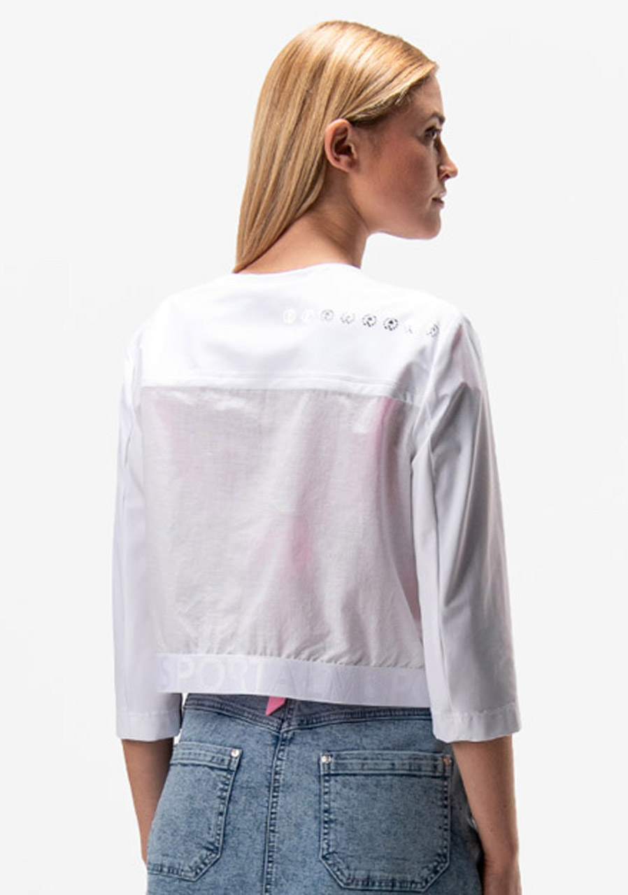 - dámské halenkové sako s kulatým výstřihem a zkrácenými rukávy