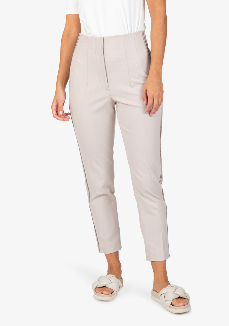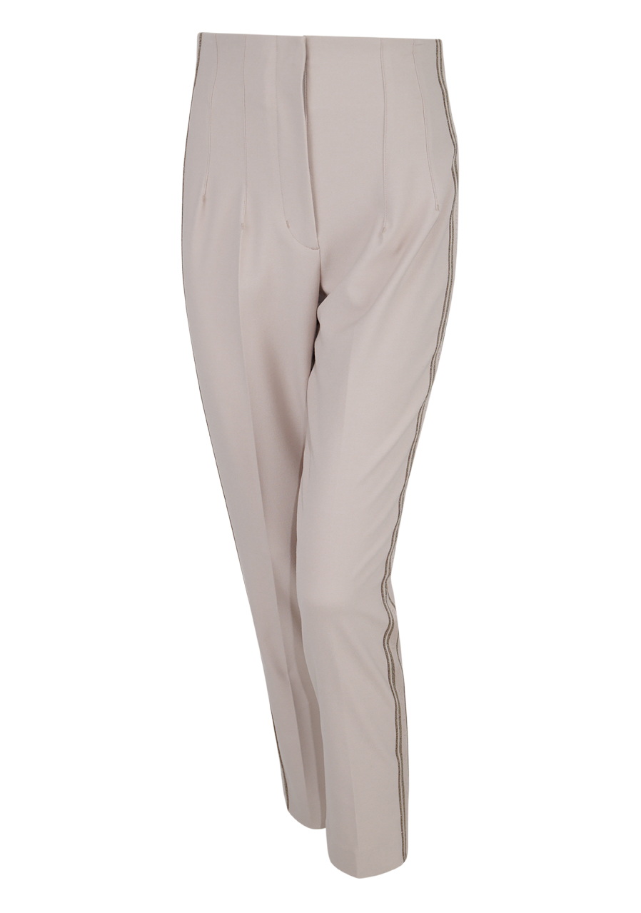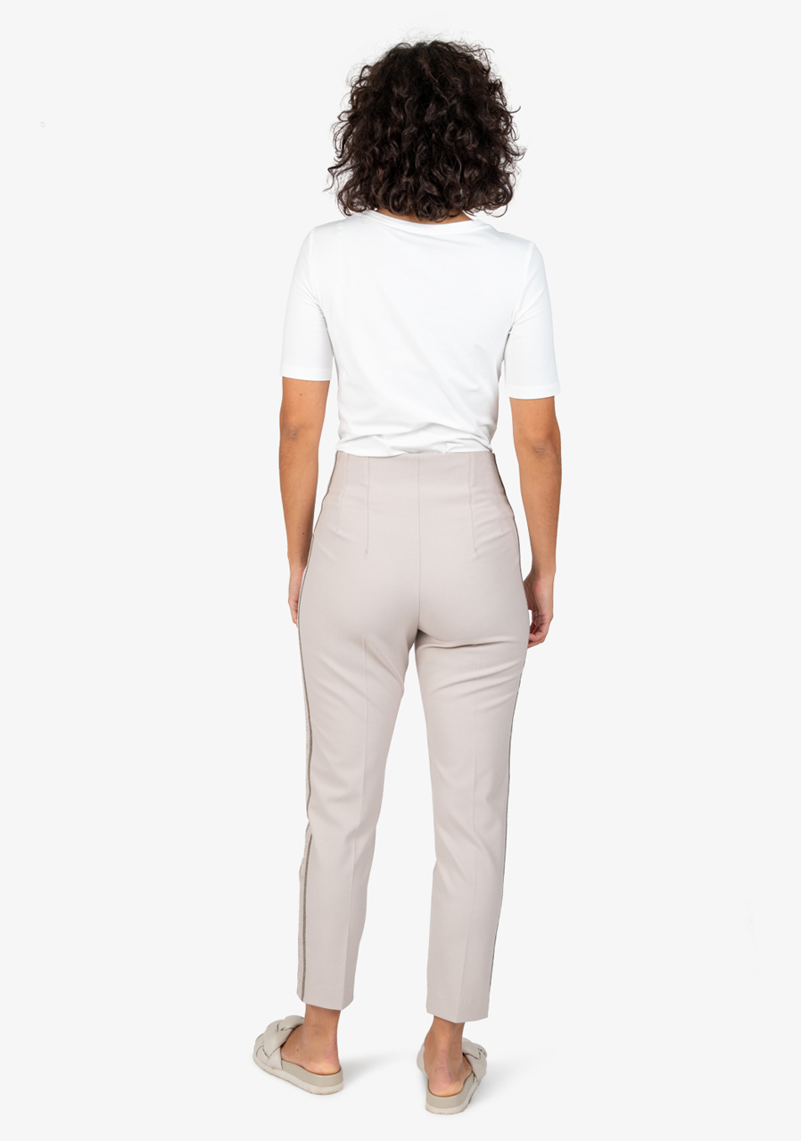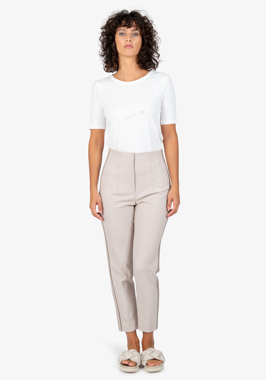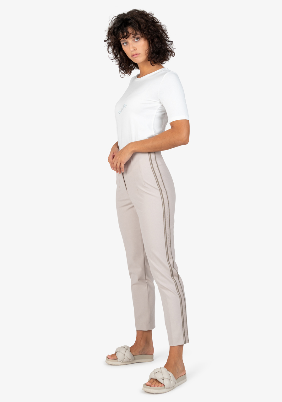 Další parametry: Vyrobeny z módní tkané látky, kalhoty obepínají tělo a podtrhují ženskou siluetu. Skrytý zip vpředu uprostřed a elegantní záhyby a záševky v pase přispívají k jejich sofistikovanému vzhledu. Tvar nohavic ve stylu mrkve a zkrácená délka poskytují kalhotám moderní nádech. Boční šev je ozdoben logem značky Sportalm, což dodává kalhotám stylový detail. Délka vnitřního švu ve velikosti 36 je 70 cm. Materiálové složení zahrnuje 67% polyesteru, 29% viskózy a 4% elastanu, což zajišťuje pohodlí a snadnou údržbu.