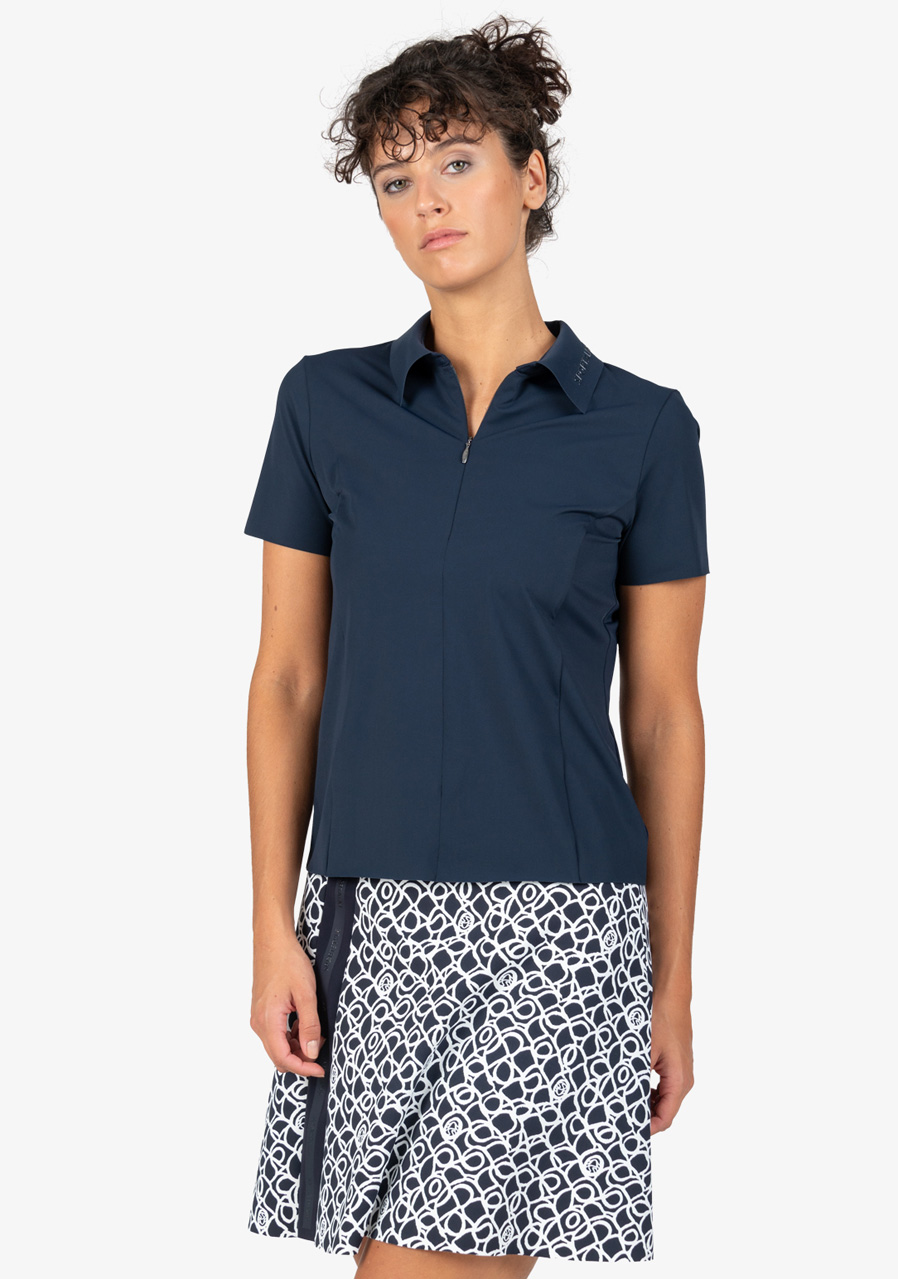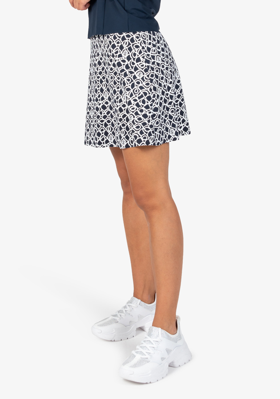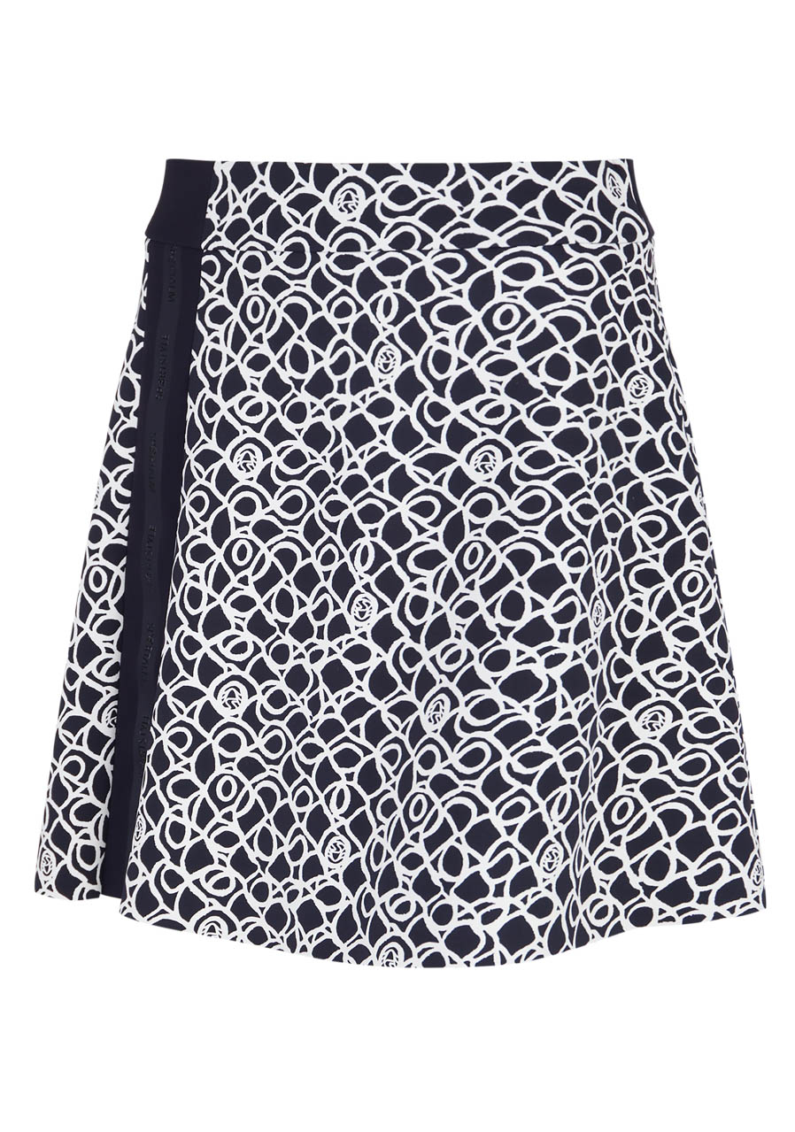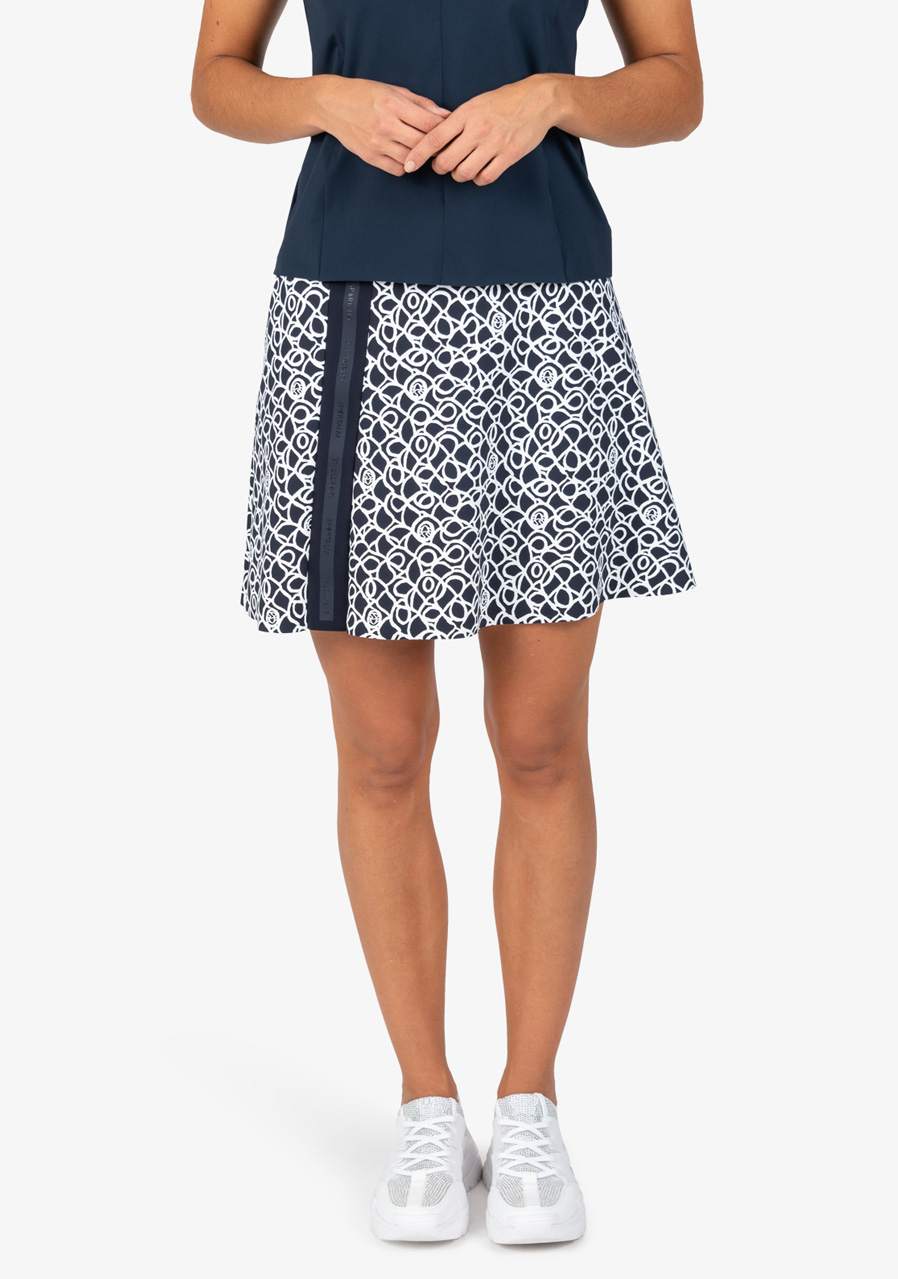 Další parametry: S měkkým elastickým pasem zpracovaným neviditelně a A-line tvarem je sukně pohodlná a zároveň lichotivá. Chytře umístěné vložky a centrální páska dodávají sukní stylový detail, zatímco lem s otevřenými okraji zajišťuje moderní vzhled. Pro praktické využití je na pravé straně skrytá kapsa na zip. Délka sukně pro velikost 36 je 50,2 cm, což zajišťuje ideální délku pro pohodlný pohyb na greenu.