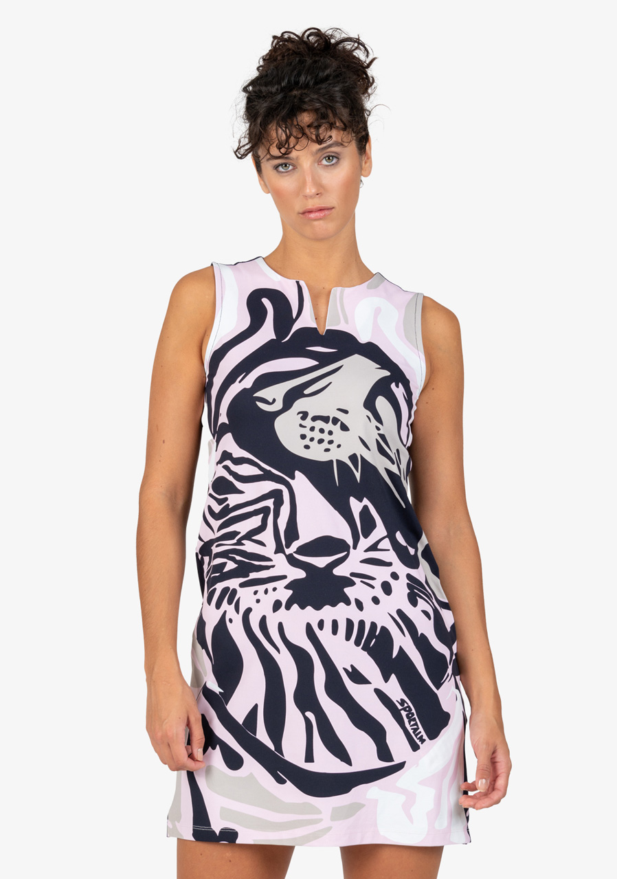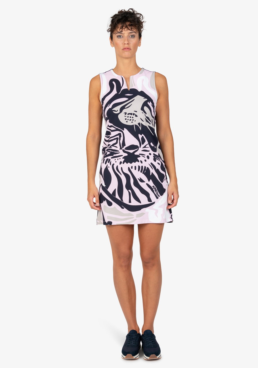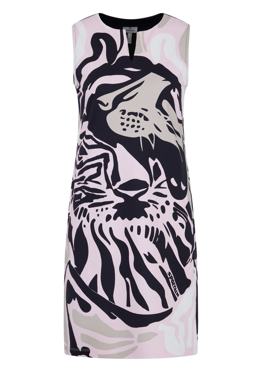 Dámské šaty Sportalm 550158 Mauve Chalk jsou dokonalým spojením stylu a funkčnosti, ideální pro každou golfistku. Tyto golfové šaty bez rukávů s exkluzivním potiskem hlavy tygra na přední straně vás zaručeně dostanou na green v módním a pohodlném stylu.