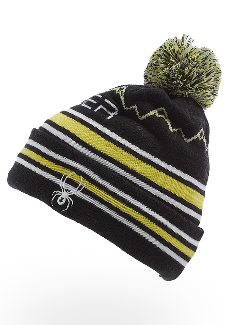 - children's knitted hat with a wrap-around brim and pom-pom