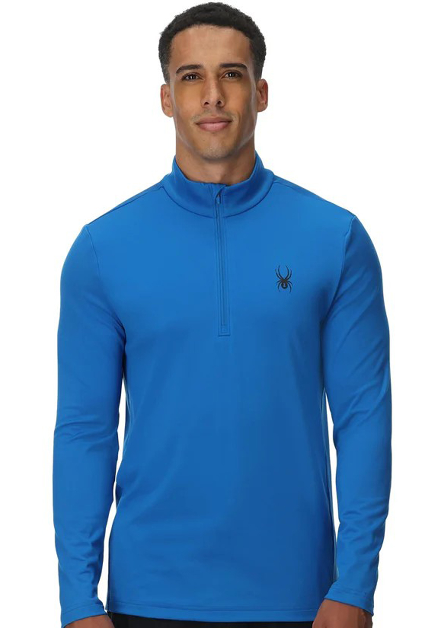The Spyder Prospect 1/2 Zip Men's Sweatshirt is a great choice for anyone looking for a reliable mid-layer for sports and everyday wear in cold weather. It is suitable for skiing, cross-country skiing, hiking and leisure. Thanks to the 360° stretch material, it does not restrict movement, and the brushed inner side provides pleasant warmth and comfort. Quick-drying fibers with Wicking technology effectively wick moisture away from the body, so you stay dry even during intense activity. The slim fit emphasizes the sporty look and makes it easy to layer under a jacket.