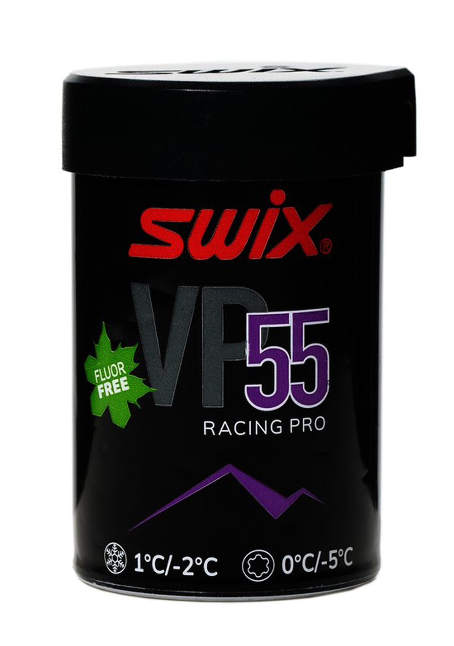 Swix VP55 je tmavě fialový odrazový vosk navržený pro běžecké lyžování v podmínkách blízkých bodu mrazu. Je ideální pro lehce vlhký nebo čerstvě napadaný sníh, ale zajišťuje spolehlivý odraz i na starším sněhu těsně pod bodem mrazu, aniž by omezoval skluz.