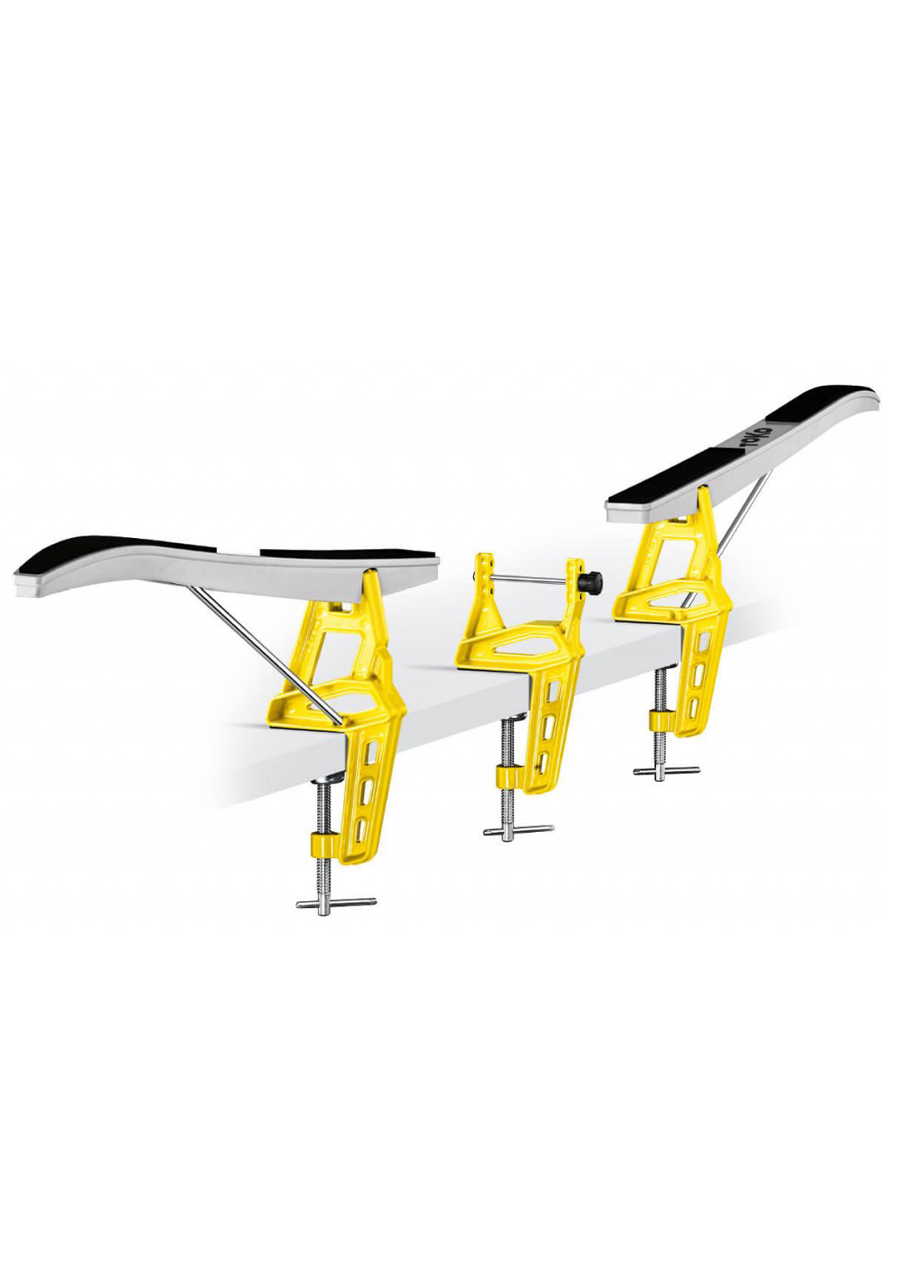 3dílný svěrákový set – centrální úchyt s pryžovou vložkou + dvě opěrky pod špičku a patku