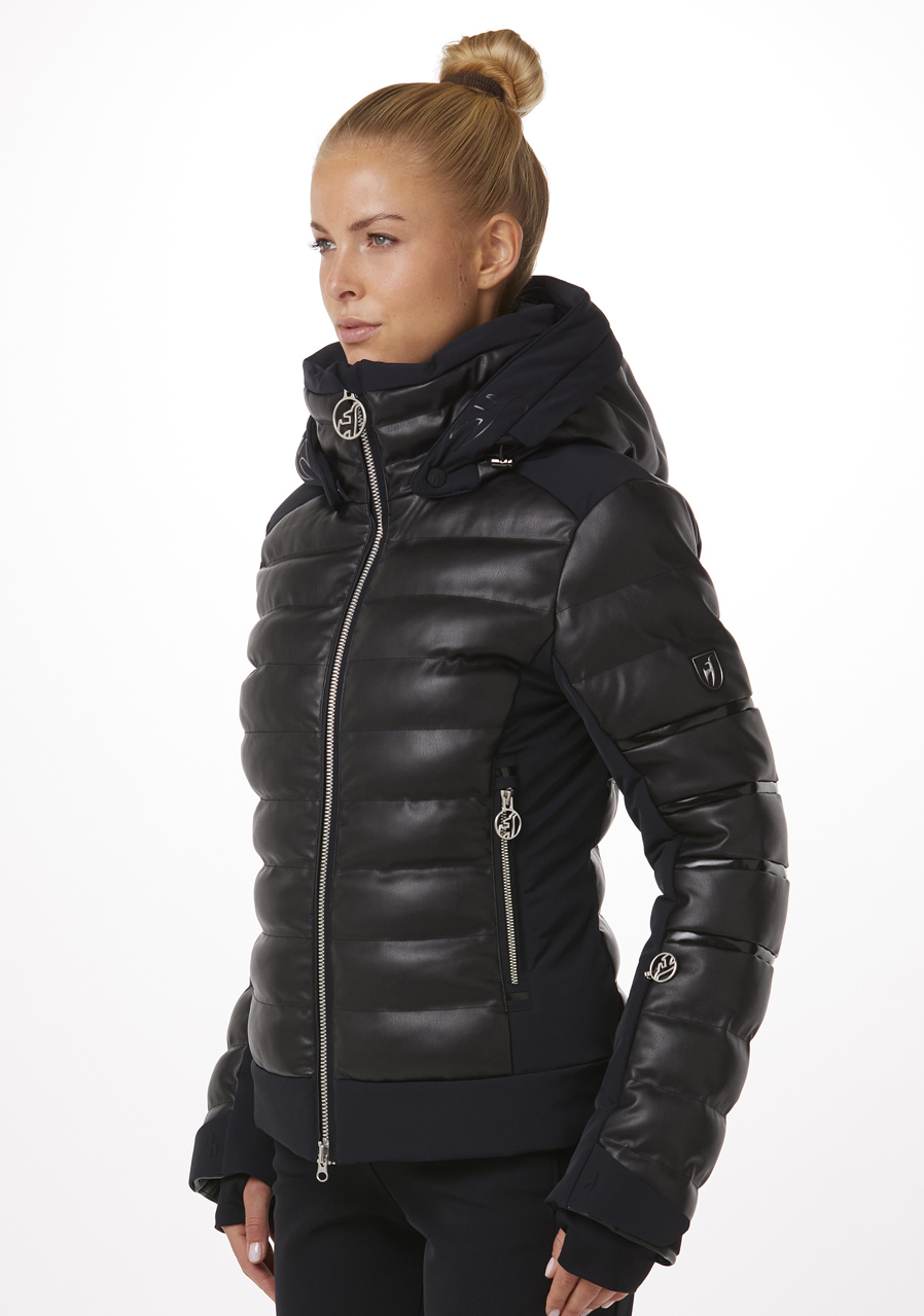 Dámská bunda Toni Sailer v černé barvě kombinuje styl a funkčnost v prémiovém provedení. Tato bunda je ideální pro lyžařské i volnočasové aktivity díky svému elegantnímu designu z umělé kůže a špičkové funkčnosti. Bunda je navržena ve slim fit střihu, který lichotí postavě, a díky 4-way stretch materiálu zajišťuje maximální volnost pohybu. S vodotěsností 20 000 mm a vysokou prodyšností 20 000 g/m²/24h poskytuje vynikající ochranu proti povětrnostním vlivům.