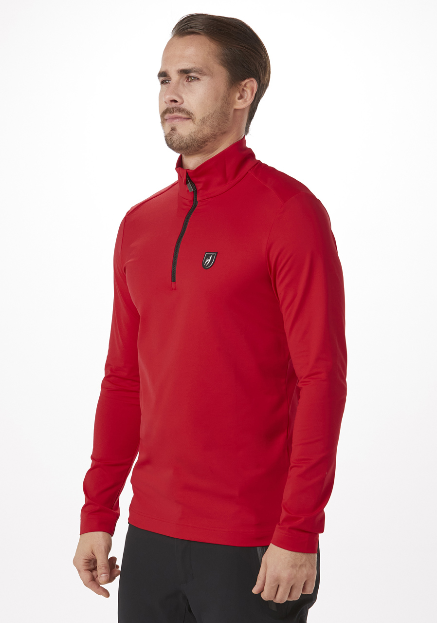 Pánský rolák Toni Sailer se zipem v elegantní červené barvě je ideální volbou pro aktivní muže, které hledají kombinaci stylu a funkčnosti. Tento Slim Fit model je vyroben z kvalitního Jersey materiálu s vysokým podílem 90% polyamidu a 10% elastanu, což zajišťuje skvělou elasticitu a pohodlné nošení.