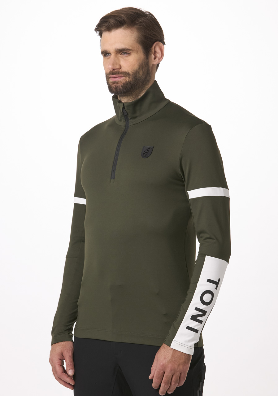 Men's Slim Fit sweatshirt made of stretchy jersey material offers a modern look and maximum comfort. The material adapts to the figure, is breathable, quick-drying and easy to maintain. The premium detail in the form of a leather patch with a metal logo and a high-quality YKK® zipper with chin guard give the sweatshirt an elegant and sporty character.
