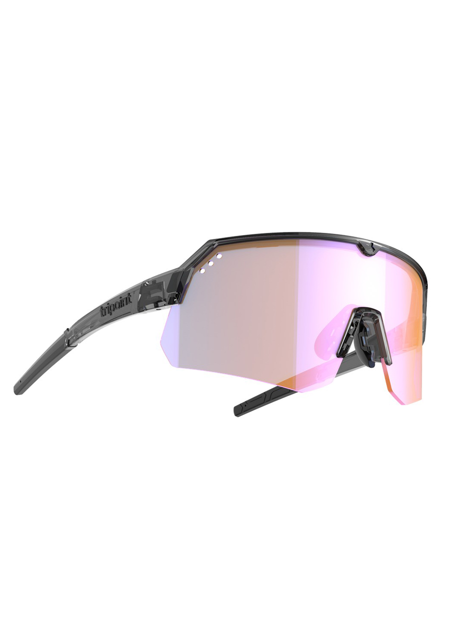 Technical specifications: Model: TRIPOINT 001 TRERIKSRÖSET Frame color: Shiny Transparent Lens type: Tri-x UltraVue Lens color: Dark (black tint) Lens category: 3 Light transmission: 8–18% UV protection: 100% UVA and UVB Weight: approx. 30 g Usage: Sports, cycling, mountains, daily wear