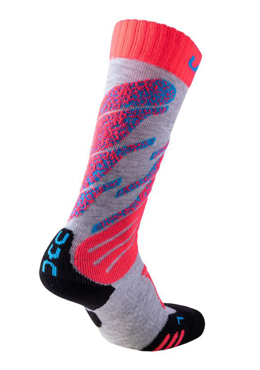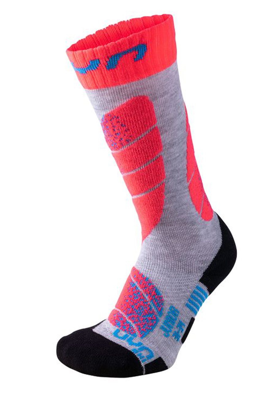 Description:UYN Ski Junior Socks – Light Grey/Coral Fluo – Comfort, Warmth, and Protection for Young Skiers