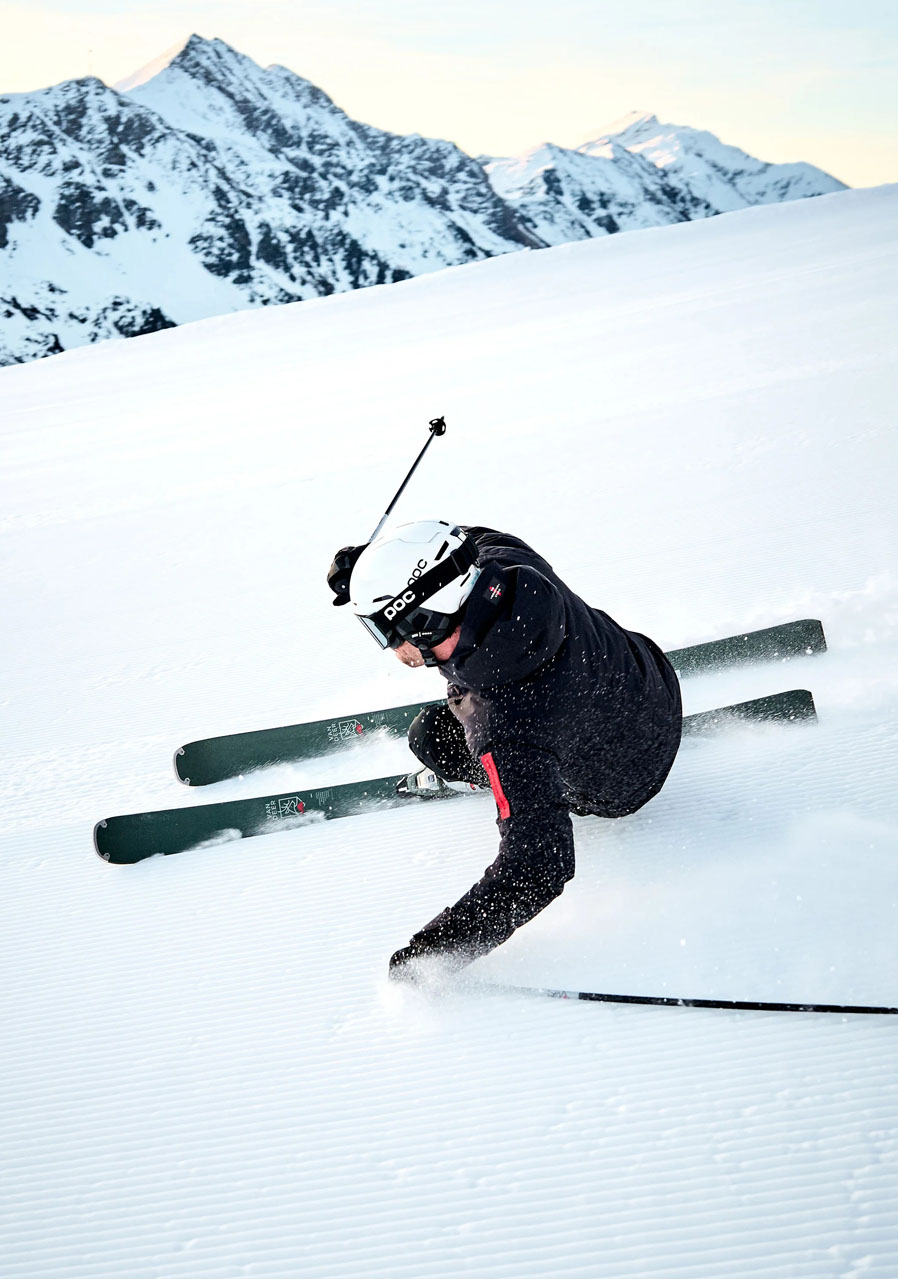 Other features : precise control, stability at higher speeds, suitable for hard and groomed snow